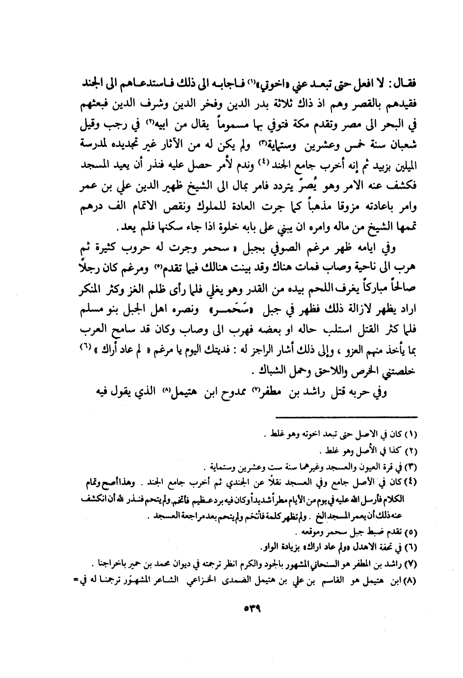 وَفِي حربه قتل رَاشد بن مطفر ممدوح ابْن هتيمل الَّذِي يَقُول فِيهِ