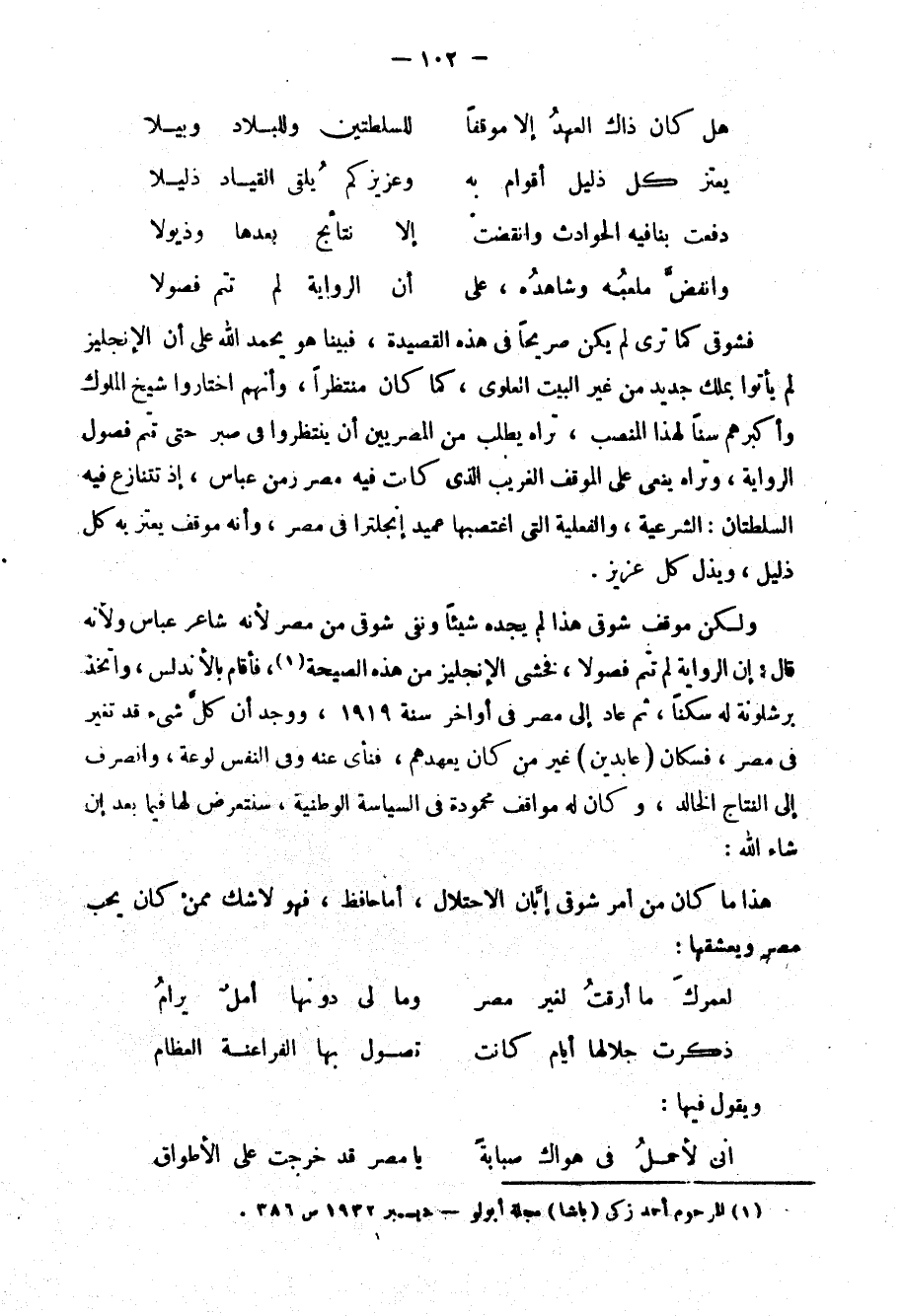 لما رحل كرومر عن مصر، وعلاقته بعباس ما عرفت، وأساء في خطبة وداعه لإسماعيل كل الإساءة على الرغم من حضور الأمير حسين كامل قال قصيدته المشهورة3.