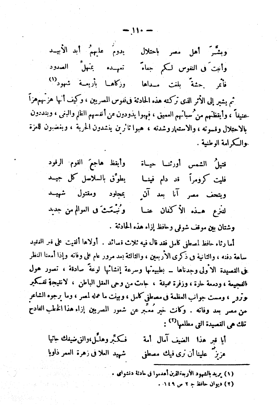 ونراه يلتفت سريعة إلى الإنجليز يمدحهم فيها، ولكنه لا يطيل، بيد أنه يدعو إلى التعاون معهم، وكأنه يقرر "سياسة الأمر الواقع" ولم ير بدًّا من أن يقول ما قال، وقد أعلنت الحماية على مصر، ويوجه بعد ذلك الكلام إلى مصر البائسة، ويطلب منها أن تستسلم للقضاء، ويخبرها أن الرواية لم تتم فصولها بعد. وهذا ولا شك تغير في موقف شوقي إزاء الإنجليز اقتضته الظروف التي جرت على غير ما يهوى. استمع إليه يقول في هذه القصيدة: