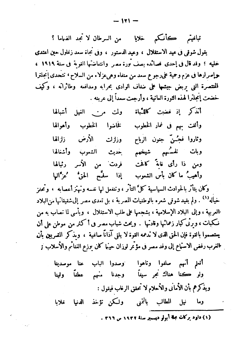 وظهر حافظ في هذه القصيدة بأنه شاعر الوطنية الحقة، وبأنه لا يعرف مداجاة الإنجليز ولا موادعتهم، وعبر كما فعل في قصيدته الأولى عن عاطفة كل مصري وشعوره. أما قصيدته الثالثة التي قالها بعد مرور عام على وفاة الزعيم، فقد كانت أروع هذه القصائد، ولا من حيث تصويرها للوعة والأسى، وحرقة الفراق، وعظم المصاب، ولا من حيث تصويرها لجهاد الفقيد ودفاعه الحار عن مصر وقضيتها، وإيقاظه قومًا ظن أعداؤهم بهم الظنون ورموهم بكل نقيصة، ولكن من حيث وصفه آلام مصر وآمالها، وشعورها إزاء الاحتلال ومصائبه. وقد أسفر حافظ عن ذات نفسه في هذه القصيدة، فجهر بعدائه الصارخ للإنجليز ولم يعد بعد ذلك الذي يلين القول، ويدعو إلى المهادنة وهي خير ما يمثل شعر حافظ السياسي، الذي اكتسب به لقب "شاعر النيل"، استمع إليه كيف يصور الثورة التي كانت متأججة فهمدت، والفراغ الذي تركه مصطفى في ميدان السياسة: