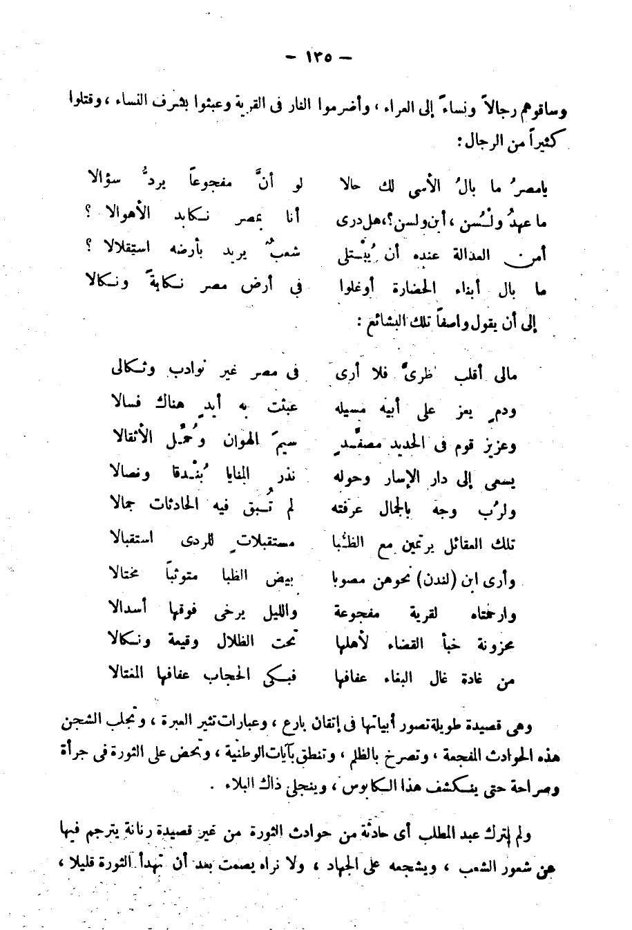 وتراه لا يكتفي بهذا، ولكنه يشير بعد ذلك إلى أن هذا القانون الظالم الذي طبق في هذه الحادثة، سيظل يبعث الفزع والرعب في القلوب، وأن ما ارتكبه من مأثم، وما طعن به مصر من جراح لن يكفر عنها بشيء ولن تلتئم هذه الجراح ما دام الاحتلال قائمًا وجنوده تبرق وترعد: