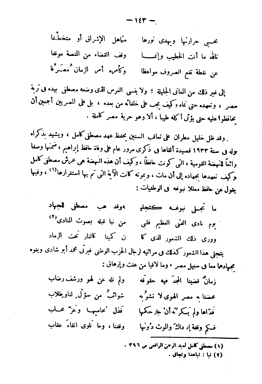 إلى آخر هذا الشعر العلوي الذي لم نسمع مثله من حافظ، أو شوقي، أو صبري أو غيرهم من شعراء ذلك الجيل. الذين عاصروا الثورة، ورأوا حماسة الأمة الفياضة، وآمالها العريضة تحثهم على الجهاد والموت.