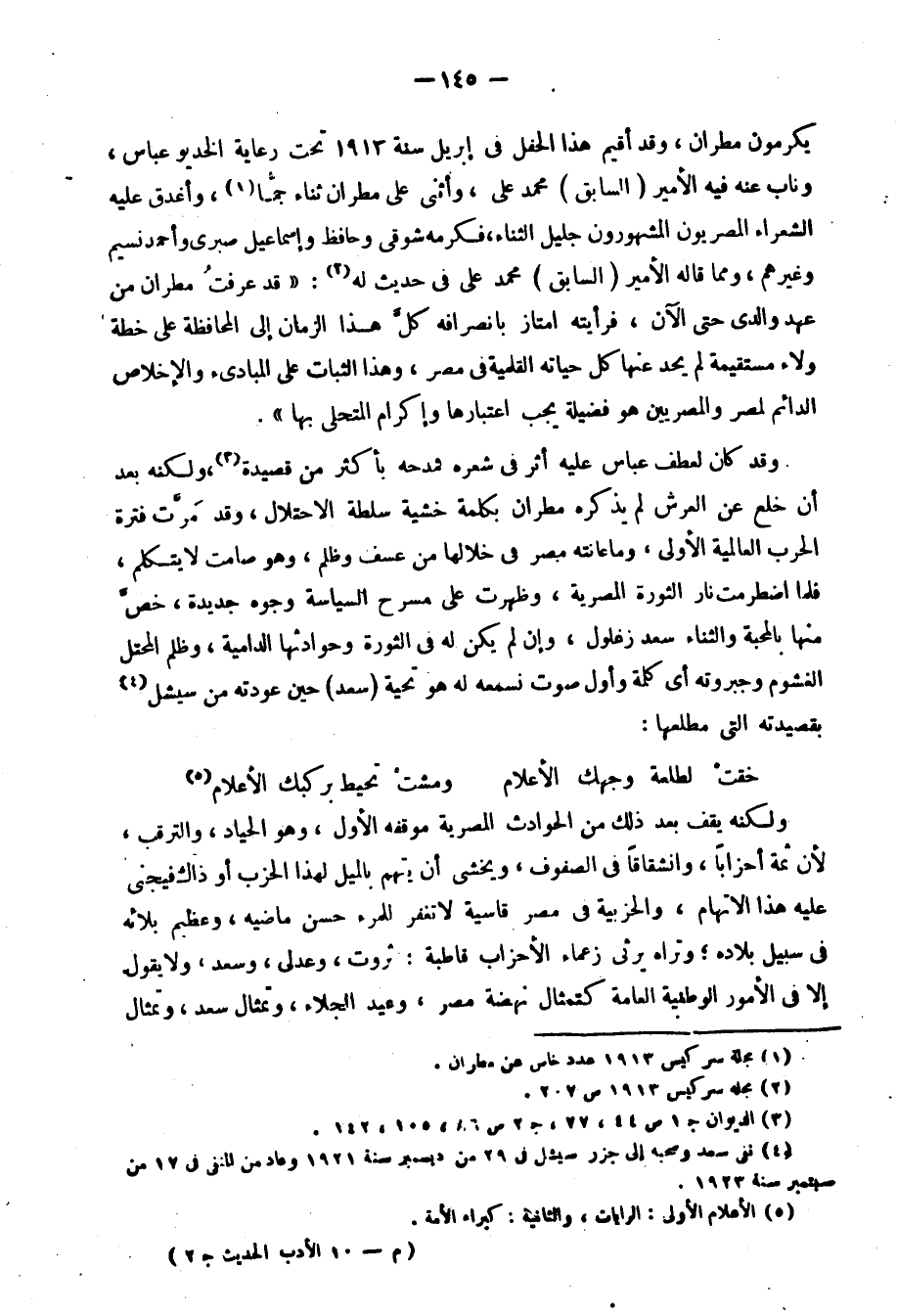 ومثل هذه النغمات العلوية لم يجرؤ سواه من شعراء طبقته على ترديدها إلا محرم والكاشف، وعبد الملطب2 يقف بينهم متميزًا في هذا الميدان، وقد شغل