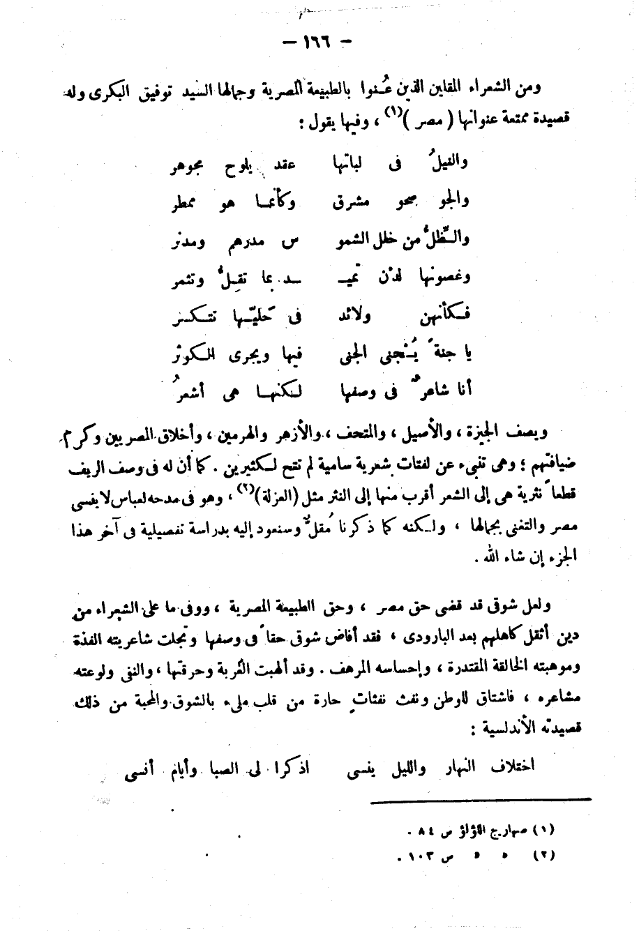 أما أحمد محرم فقد بقي حتى اليوم محرومًا القلم القوي الذي يعرض دوره بين الناس، ويعرف به قومه، وهو الذي أثر الفقر، والوحدة، والحرمان في سبيل مبدئه، وكان شاعرًا صاحب رسالة، وكان من أقوى الشعراء ديباجة وأنصعهم بيانًا، كان عيب أحمد محرم أنه يمثل الفريق الجاد من الأمة، والذي يشعر بآلامها المبرحة وأدوائها المستعصية، وكان صاحب مثل أعلى في أمة هازلة تطرب للعبث، ويفتنها زبرج الحضارة الغربية ليفتننا عن أهدافنا القويمة. كان شاعر مصر سياسيًّا واجتماعيًّا؛ وكان شاعر العروبة والإسلام، متعدد النواحي الأدبية؛ ومع ذلك كل عاثر الجد في حياته؛ لأنه لم يتملق العظماء فيمدحهم بالباطل، ويرثيهم إذا ماتوا، بل كان شاعرًا صادق الشعور في كل ما ينطق به، لا نظامًا يقول في المناسبات، فلم يجد من يدفعه إلى عالم الصدارة كما وجد سواه من الشعراء، ولنا إليه عودة إن شاء الله.