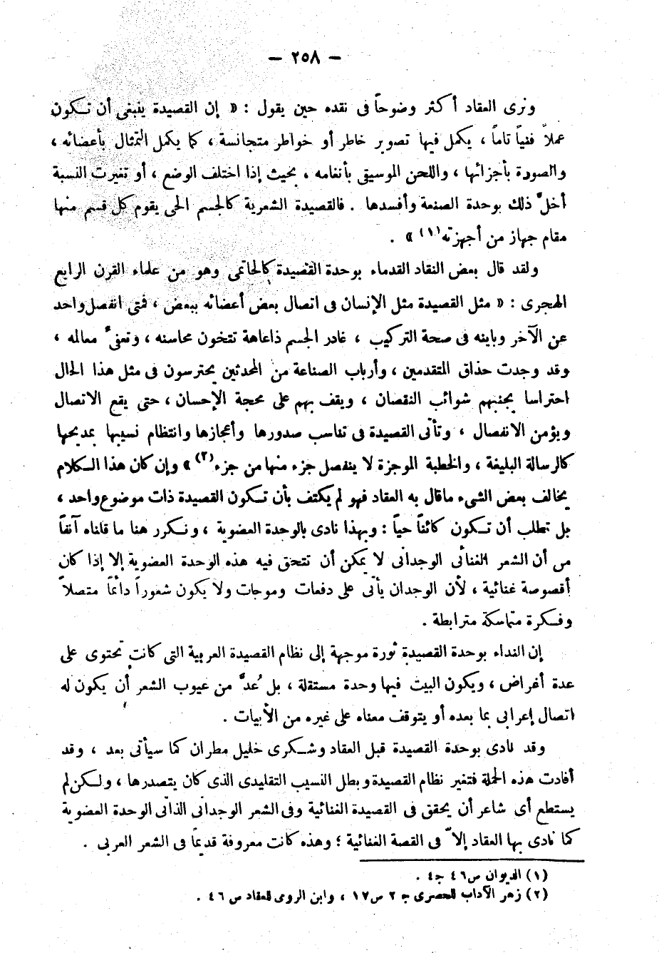 ومن يتملى كلام شكري في فائدة القراءة وأثرها في تزويد الشعر بالمعاني وغثارة الخيال، يدرك أن شكري ممن يؤثرون المعنى على اللفظ والصياغة وكان هذا طابع مدرسته وجرى على سنته زميلاه، وقد أضر ذلك بشعرهم؛ لأن المعاني في الشعر لا تقصد لذاتها، ولكنها تقصد حين تلبس الفن الرفيع، مصحوبة بالموسيقى الشعرية الخلابة، فإن اكتفى الشاعر بالمعنى ولم يعط أركان الشعر الأخرى حقها هبط شعره إلى مستوى النثر.