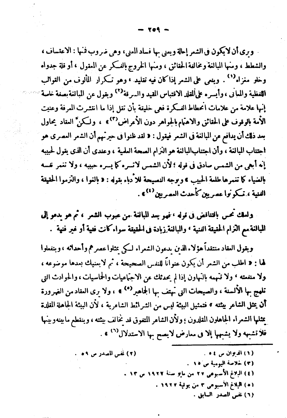 ويقول كذلك مفصلًا الكلام على التشبيهات التي ولع بها المتأخرون: "ومثل الشاعرالذي يرمى بالتشبيهات على صحيفته من غير حساب، مثل الرسام الذي تغره مظاهر الألوان فيملأ بها رسمه من غير حساب"، التشبيه عنده لا يقصد لذاته، وليس هو عقد صلة بين محسوس أو بين معنوي ومحسوس"، فوصف الأشياء ليس بشعر إذا لم يقترن بعواطف الإنسان وخواطره وذكرياته وأمانيه وصلات نفسه، والتشبيه لا يراد لذاته، وإنما يراد لشرح عاطفة أو توضيح حالة أو بيان حقيقة، وأجل الشعر عنده ما خلا من التشبيهات البعيدة والمغالطات المنطقية.