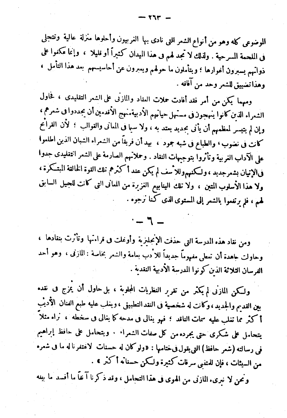 لقد كان شكري واسع الثقافة جدًّا، وكان شاعرًا مرهف الذوق والحس، يعرف طريقة في الشعر، وكان له مذهب كونه بعد دراسة، وكنا ننتظر منه أن يروج لهذا المذهب ويدعو إليه ويبسط قضاياه ويدافع عنه، ولكن حياته الأدبية كانت قصيرة، وجنى عليه فرط حساسيته وطموحه الشديد، وتوهمه تنكر الناس له فآثر العزلة وحرم النقد الأدبي، والشعر ثمرات هذه العقلية الفذة المجددة.