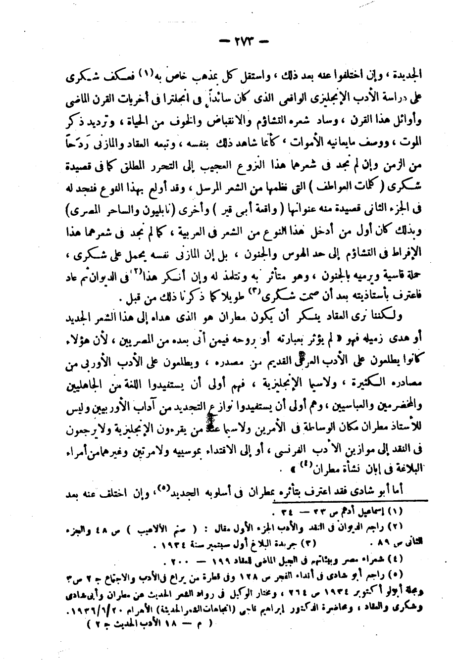 كل ما تخلع عليه من إحساسنا، ونقيض عليه من خيالنا، ونتخلله بوعينا، ونبث فيه من هواجسنا وأحلامنا ومخاوفنا هو شعر، وموضوع للشعر؛ لأنه حياة وموضوع للحياة ... وعلى هذا الوجه يرى "عابر سبيل" شعرًا في كل مكان إذا أراد. يراه في البيت الذي يسكنه وفي الطريق الذي يعبره كل يوم، وفي الدكاكين المعروضة، وفي السيارة التي تحسب من أدوات المعيشة اليومية، ولا تحسب من دواعي الفن والتخيل؛ لأنها كلها تمتزج بالحياة الإنسانية وكل ما