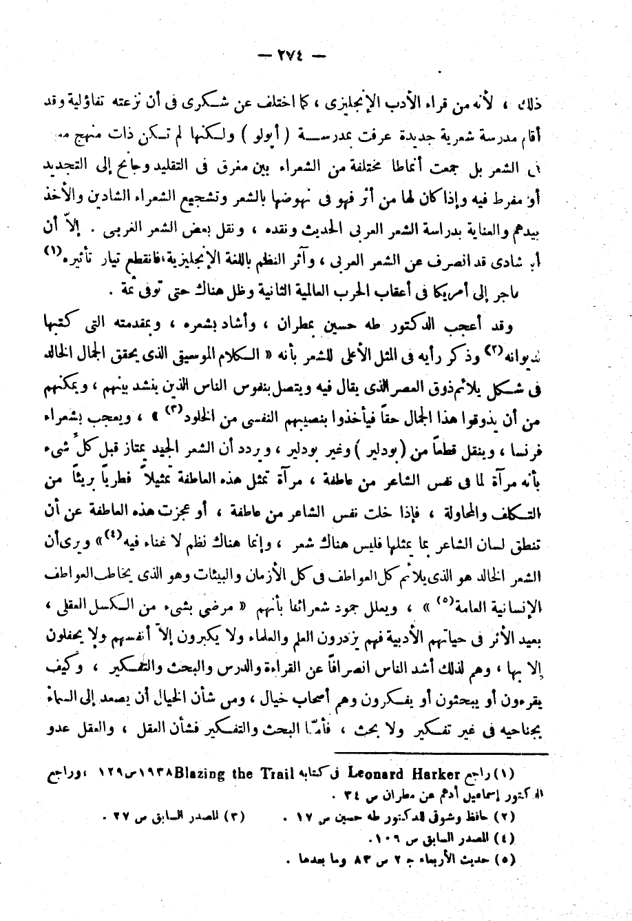 ولعلك ترى العقاد لا يركز في نقطة واحدة يدور حولها نقده، ولا يتمسك برأي في هذا النقد، وليس لذوقه أصول يرتكز عليها نقده، شأن أستاذه "هازلت"، وليس من همي الآن أن أناقشه مستحسنًا أو معارضًا وإنما أحاول أن أبين أثر نقده في الشعر المعاصر، فالعقاد كما رأيت يدعو إلى وحدة القصيدة، ويدعو إلى عدم الإحالة والتعسف والمبالغة ثم يفسر المبالغة بأنها التي لا تتنافى والحقيقة الفنية، ويرى أن موضوع القصيدة يشمل كل شيء في الحياة، وأن الشعر ليس من الضروري أن يكون ذا فائدة، وأنه ليس من شروطه أن يمثل البيئة أو المجتمع، ثم بعد ذلك يرى أن كل ما يمتزج بالحياة الإنسانية فهو ممتزج بالشعور جدير بأن يكون موضوعًا شعريًّا، صالح للتعبير، وأجد عند التعبير عنه صدى مجيبًا في خواطر الناس. أو ليس ذلك هو ما يشغل أذهان الناس في زمن ما وفي بيئة ما، فما باله يعيب على شعرائنا أن يقولوا في الحوادث السياسية، وأن يصفوا طبيعة مصر، ويصوروا المجتمع المصري بما فيه من أدواء تستحق العلاج ويتحسروا على إهمال الطبقات الفقيرة، أو ليس ذلك اهتمامًا بالطبقة العاملة في الأمة واهتمامًا بالإنسانية التي حرص العقاد على أنه يكون شعره وقفًا عليها؟ ولكنه يعارض فكرة القومية كما فهمها هيكل، وكما طبقها شوقي وحافظ وغيرهما.