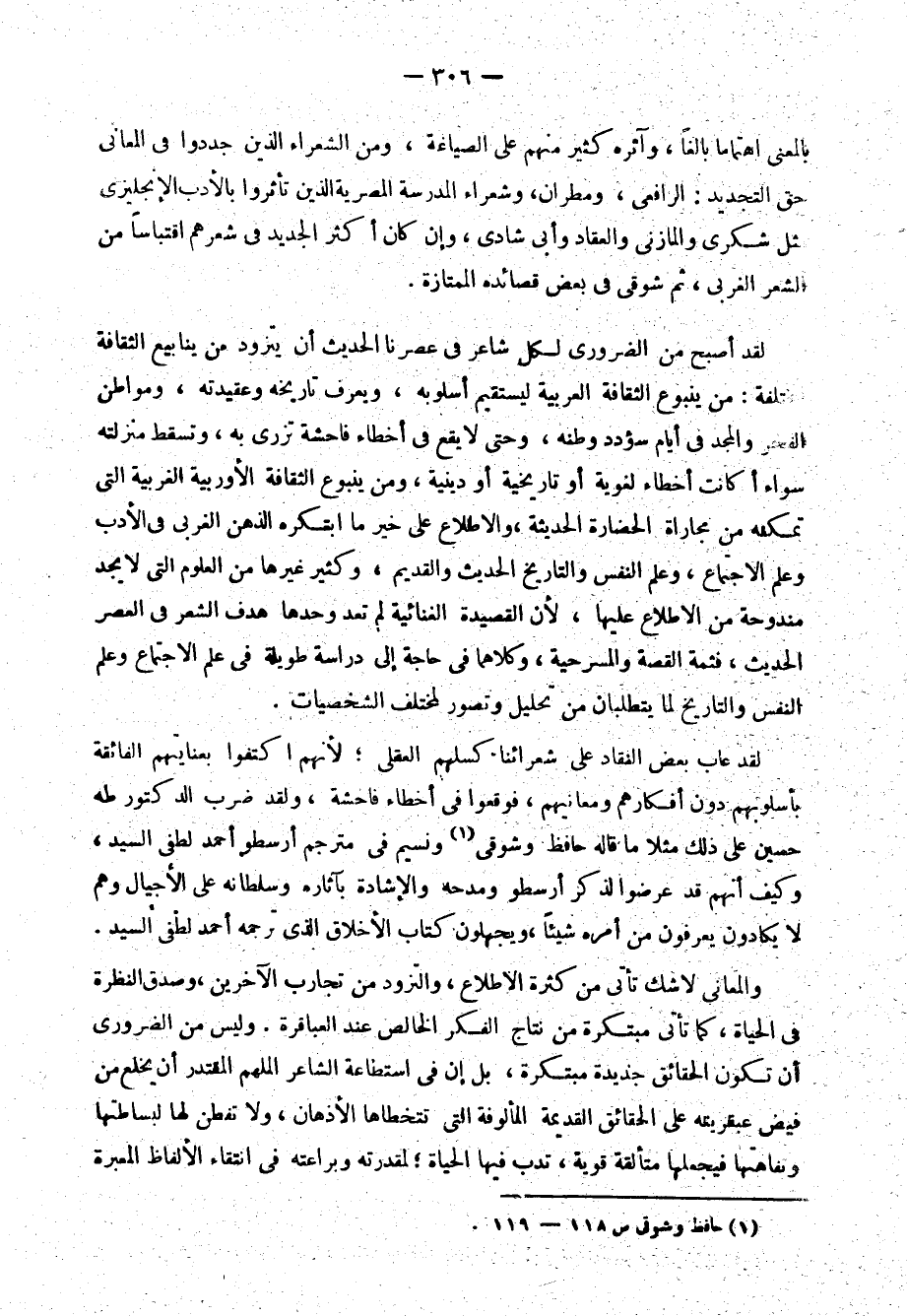 الشعراء في مديحهم، وساروا فيه على سنن الأقدمين من افتتاح القصائد بالغزل المتكلف، ثم وصف الممدوح بالكرم والشجاعة وغير ذلك من الصفات التي استنفد شعراء الماضي كل معانيها. ولقد كان هذا الغرض هدفًا لهجمات النقاد المريرة، ولوم الشعراء لومًا شديدًا على عكوفهم عليه في عصر يجب أن يتطلع فيه الشاعر إلى الشعب لا إلى الأمراء والخلفاء، ويجب أن يبنى مجده على شاعريته ومواهبه باستنباط المعاني الجديدة، ومجاراة الحياة التي يعيش فيها، لا على التمسح بأعتاب الملوك والأمراء، وبنظراته العامة إلى الإنسانية لا بنظراته الفردية المحلية، وقد أثمرت هذه النقدات ثمرتها، وانصرف معظم الشعراء الذين كلفوا بالمديح الشخصي حينًا إلى غيره من أغراض الشعر، وإذا مدحوا فلبطولة فائقة، أو لغرض شعبي عام، أو لعمل وطني جليل، أو ذهبوا إلى التاريخ يستوحون أمجادهم ومفاخرهم والمدح كما يقول الرافعي1: "إذا لم يكن بابًا من التاريخ الصحيح لم يدل على سمو نفس الممدوح بل على نفس المادح، وتراه مدحًا حين يتلى على سامعه، ولكنه ذم حين يعزى إلى قائله، وما ابتليت لغة من اللغات بالمديح والرثاء والهجاء ما ابتليت هذه اللغة العربية".