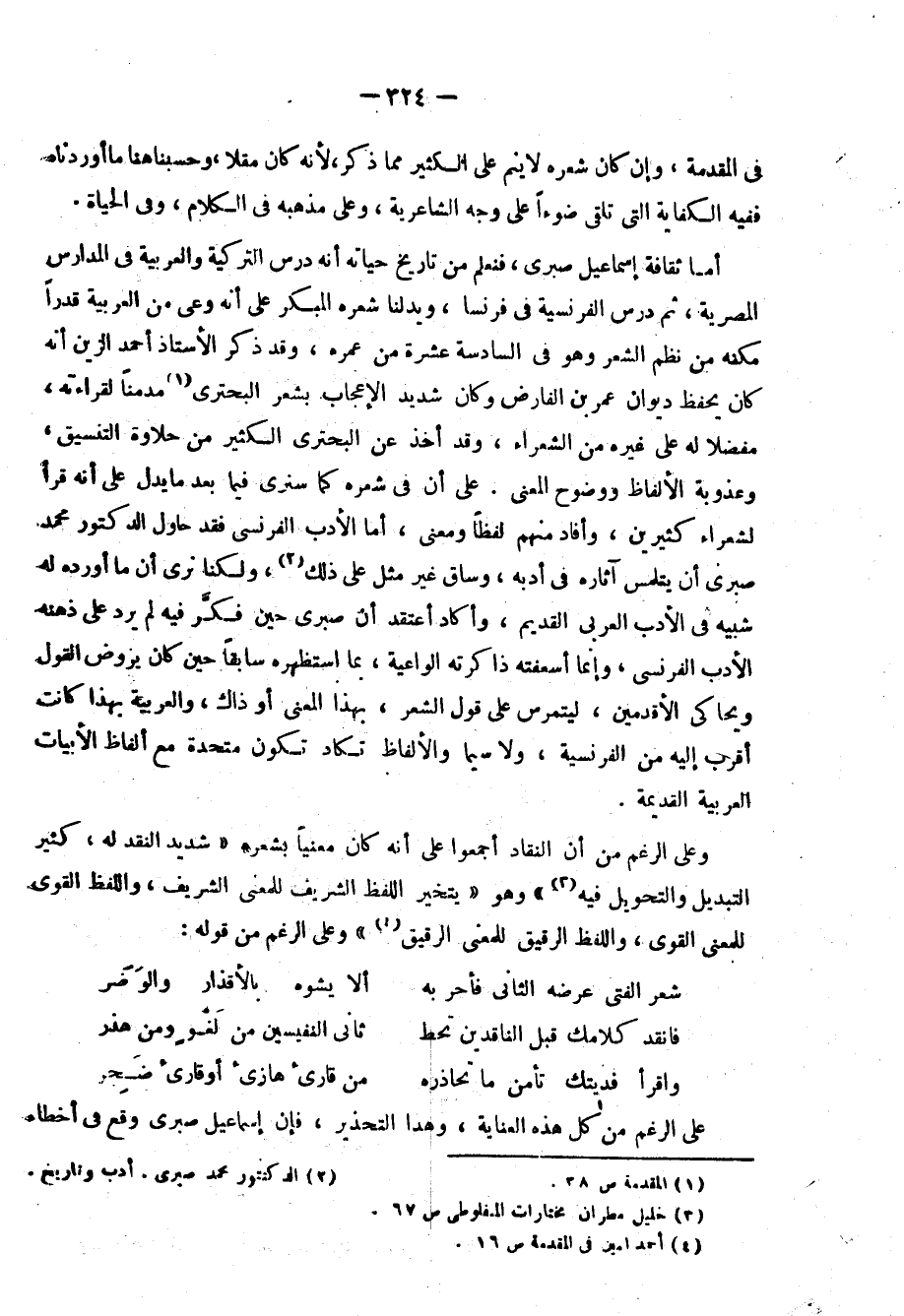 لقد عاب بعض النقاد على شعرائنا كسلهم العقلي؛ لأنهم اكتفوا بعنايتهم الفائقة بأسلوبهم دون أفكارهم ومعانيهم، فوقعوا في أخطاء فاحشة، ولقد ضرب الدكتور طه حسين على ذلك مثلًا ما قاله حافظ وشوقي1 ونسيم في مترجم أرسطو أحمد لطفي السيد، وكيف أنهم قد عرضوا لذكر أرسطو ومدحه والإشادة بآثاره وسلطانه على الأجيال وهم لا يكادون يعرفون من أمره شيئًا، ويجهلون كتاب الأخلاق الذي ترجمه أحمد لطفي السيد.