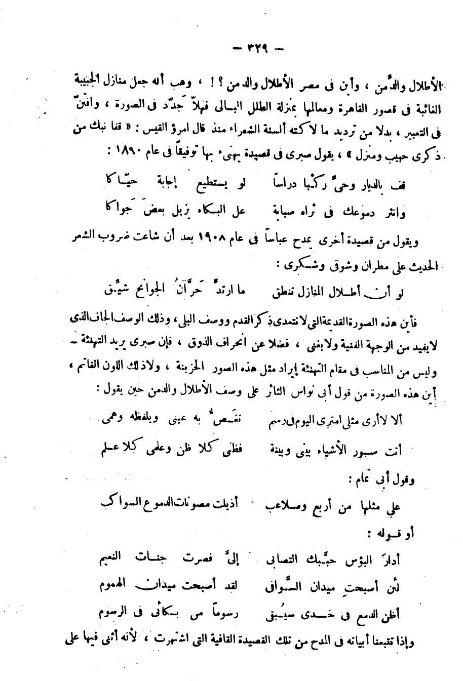 القصائد التي عارضوا بها السابقين من الشعراء، وقد لوحظ أن شوقي يستطيع إذا دخل في دائرة شعره أن يتخلص من قبضته وسيطرته، وسنرى عند ترجمتنا في هذا الجزء لصبري مقدار ما أخذه من سواهن وكيف أن الابتكار لديه قليل.