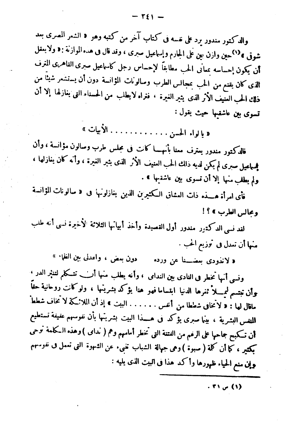 ولا تعجب إذا عددنا إسماعيل صبري في شعراء المدرسة، فعلى الرغم من أنه درس في فرنسا بعض الزمن، واحتك بالثقافة الغربية احتكاكًا مباشرًا سواء في دراسته بمدينة "إكس"، أو باطلاعه على القوانين الفرنسية، وشغله مناصب قضائية كثيرة فإنه لم يفد من تلك الدراسة الفرنسية، وشغله مناصب قضائية كثيرة فإنه لم يفد من تلك الدراسة القانونية، وما عساه قرأ في الفرنسية إبان مقامه في فرنسا من أدب واجتماع، كما لم يفد من اتصاله بالحياة الغربية، وقضائه ردحًا من الزمن بين الغربيين إلا قشورًا وصفات عامة في شعره وجهته نحو نوع خاص منه. ثم صقلًا في الذوق، وقد يكون هذا طبيعة فيه لا مكتسبًا من إقامته بفرنسا، وقد يكون من أثر الوظيفة، وكثرة اختلاطه بالأجانب المقيمين بمصر1. فكم من شاعر عربي قبل صبري، وبعد صبري اشتهر بالرقة، وإرهاف الحس، وجمال الذوق، ولا سيما إذا كان من أهل القاهرة، والقاهرة قد عرفت من قديم الزمان بأنها مدينة الظرف والدماثة، والنكتة، والمرح.
