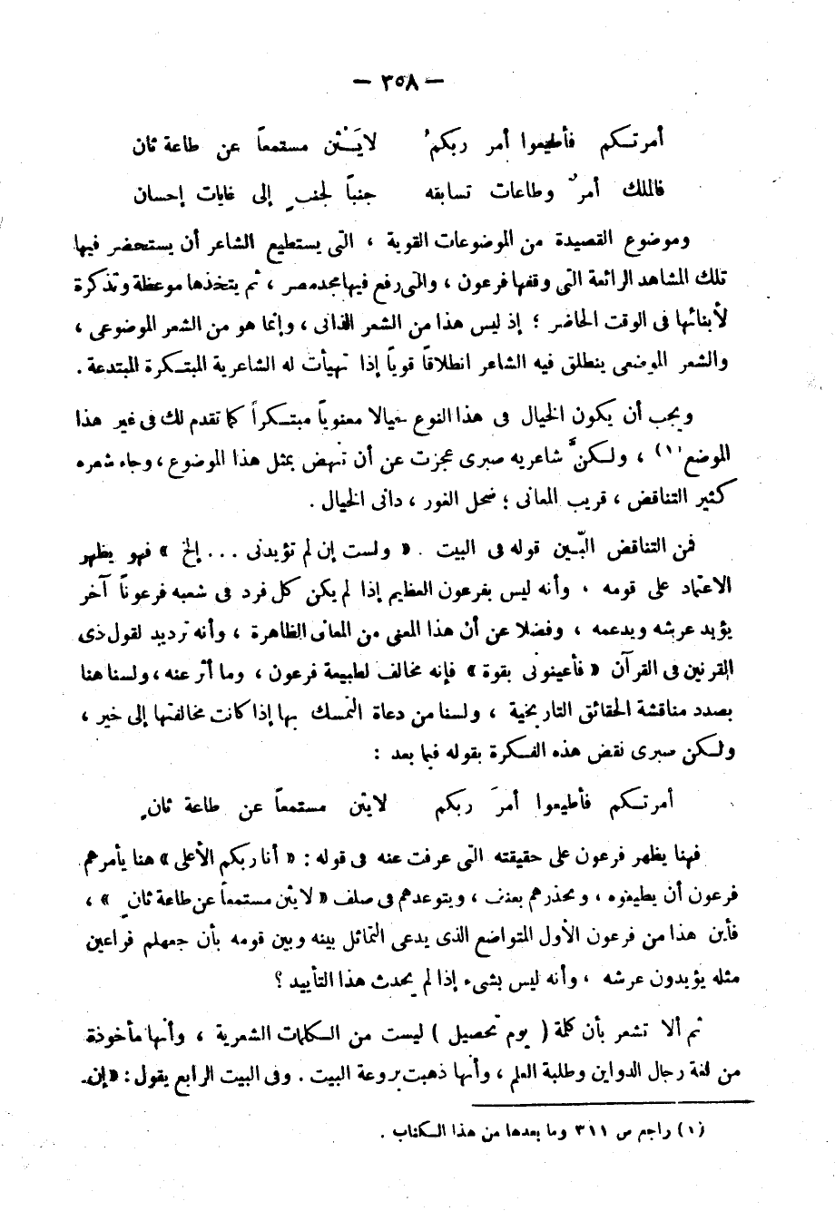وأما أنها لواء الحسن وأن الفتنة استيقظت في ظل اللواء فقديمًا قيل: الفتنة نائمة لعن الله من أيقظها" وأما قوله: "فرقتهم في الهوى ثاراتهم"، فقد قيل قبل هذا: "قامت حروب الهوى على ساق". وأما قوله: "فأجمعي الأمر وصوني الأبرياء" فقد قال عمر بن الفارض أستاذ صبري: