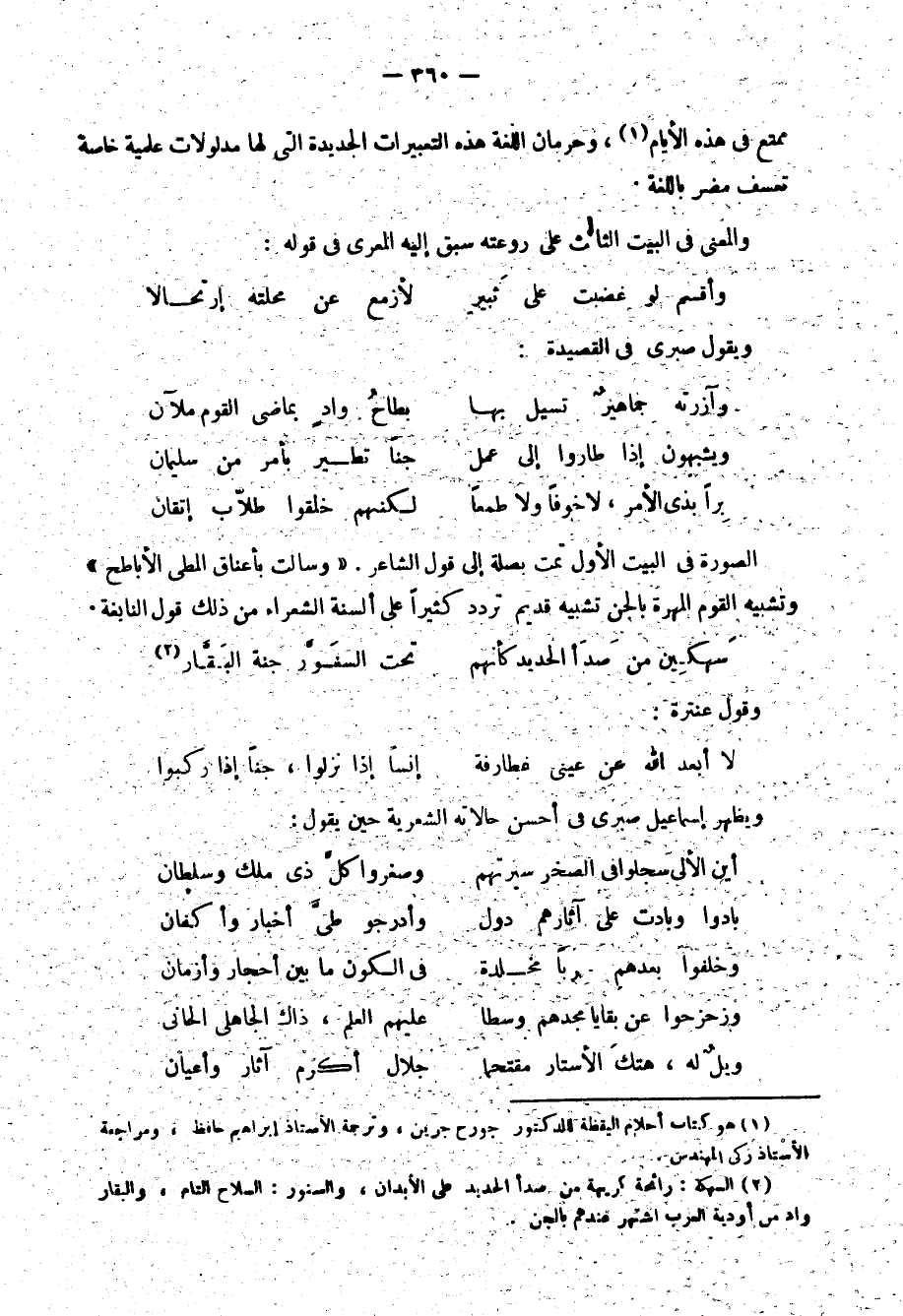 وفي أول هذه الأبيات كلمة "معدات الهناء"، والمعتدات لعمري ثقيلة جدًّا في هذا البيت فضلًا عن أن الهناء بمعنى هناءة لم تسمع في الفصيح، وطلبه في البيت الثاني من المحبوبة أن تسفر؛ لأن هذا الجمال لم يخلق ليتوارى وراء الحجاب، معنى ردده من قبل أكثر من شاعر عربي ومن أحسن ما قيل في هذا قول الحسن التهامي:
