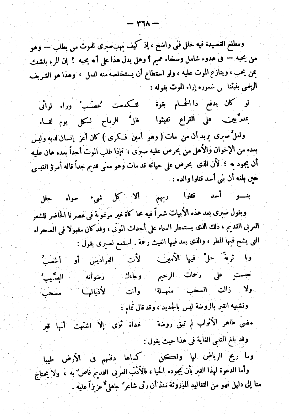 إلى غير ذلك من التشبيهات الأثرية التي لا تلائم ذوق العصر، وليس فيها رائحة من تجديد، زد على هذا أنه عنى كل العناية بوصف محاسن المرأة ومفاتنها الجسمية، وقلما التفت إلى الجمال المعنوي، أو تحليل العاطفة، أو تصوير الحب على حقيقته تصويرًا غنيًّا قويًّا. يعجبه من المرأة قوامها المياس المرهف.