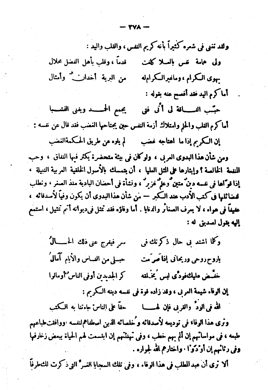 وأما النثر فقوله: "أحب التوحيد في ثلاث: "الله" و"المبدأ" و"المرأة".