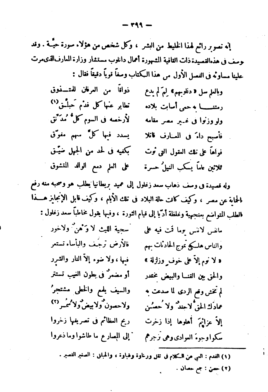 ولهذا تعجب كل العجب لدار العلوم، فهي في كل عهد تغص بمن يقرضون الشعر في أثناء الطلب، ويثبت منهم في الميدان، ويجلي في حلبة السباق من تعهد هذه الموهبة بالصقل والدراسة، وربما كانت دار العلوم متميزة عن سواها في هذه الناحية؛ لأن الدروس تلقي فيها بلغة فصيحة سليمة أدبية؛ ولأنها كلها تدور حول العربية، وإتقانها: نحوًا، وبلاغة، ونقدًا، وأدبًا، ولأن الطلب يأتي إليها وعنده ذخيرة سابقة من القرآن الكريم وعلوم الدين، وقدر لا بأس به من العلوم العربية، هذا فضلًا عن الرعاية والعناية والتوجيه والتشجيع من جانب الأساتذة الذين يوجهون الطالب الوجهة القومية التي تنمي من مواهبه وتدافعه قدمًا إلى الأمام فلا يلبث إلا قليلا في هذه البيئة الجديدة حتى تتفتح ملكاته اللسانية الكاملة، ويلهج بقول الشعر، ولقد صورها عبد المطلب أبدع تصوير، وبين فضائلها على اللغة العربية، وعلى الأدب والشعر بقوله يخاطبها: