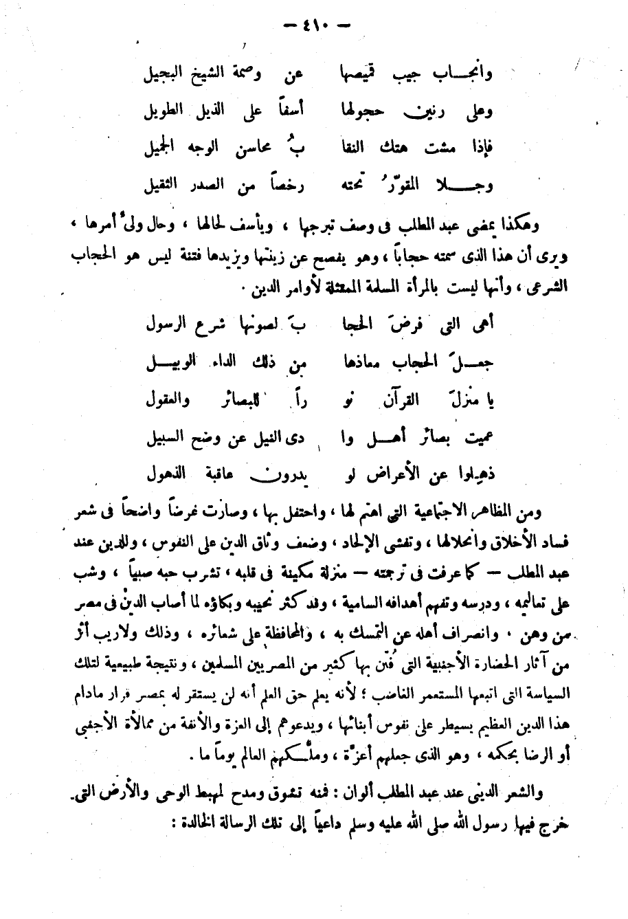 ويتمنى أن تعود تلك العهود، وترجع أيام الغضا، إلخ، وليس هذا شعر شخص يعيش في مصر ويرى النيل والجزيرة، وسيف البحر المتوسط، والمغاني العامرة، والجنان الفيح، والآثار الباهرة، إنه يعيش في مصر بجسده، ولكن روحه في رحلة طويلة إلى جزيرة العرب، وقد تعود فترتد مصرية الشعور والعاطفة.