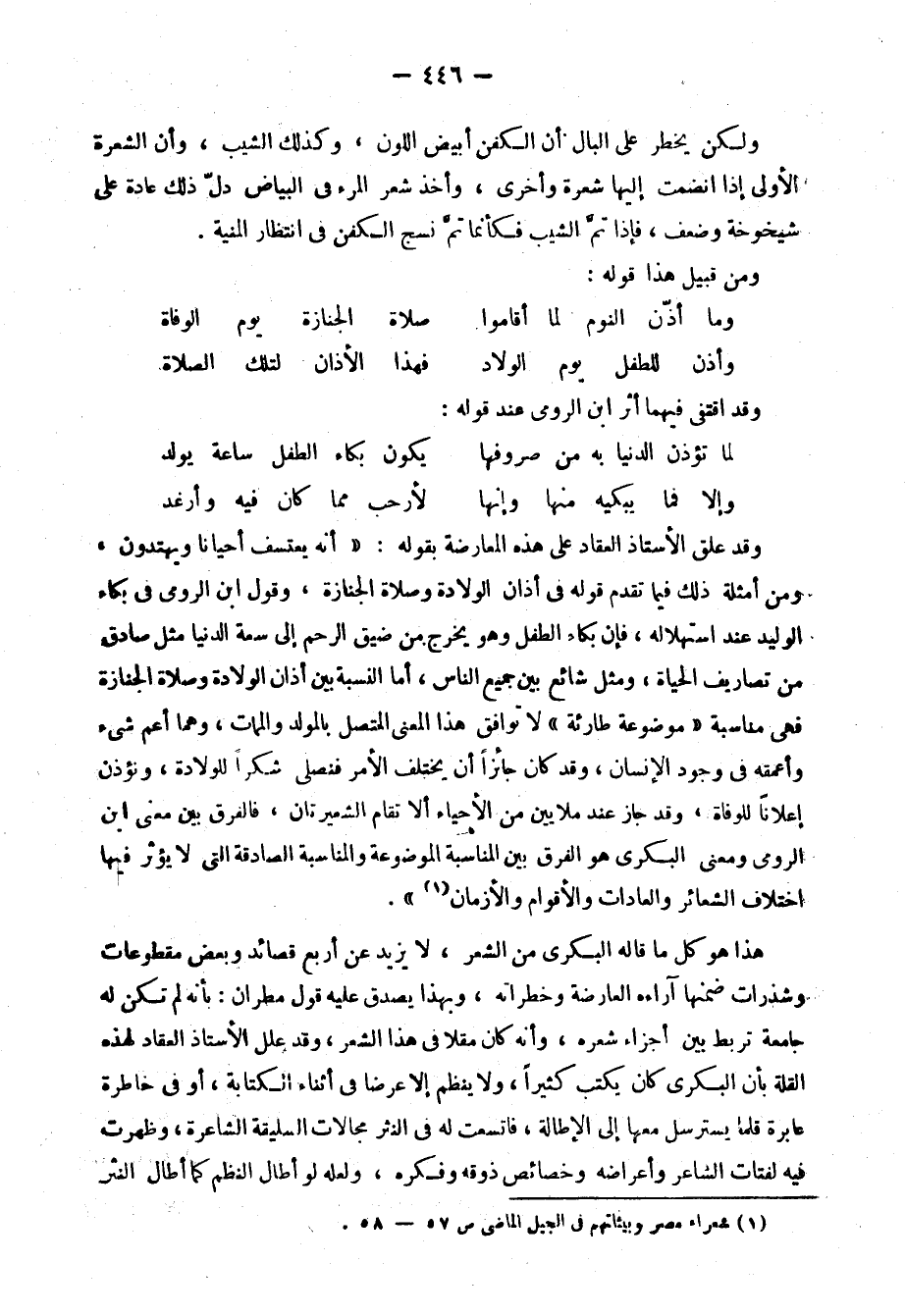 وهاكم نموذج آخر لشعراء المدرسة القديمة، الذين طغى حب المحاكاة للقديم على ما لهم من ثقافة حديثة، ومعرفة باللغات الأجنبية وآدابها، ومشاهدة لحضارة أوربا عن كثب بالزيارة والاختلاط، وتجدون هذا النموذج ممثلًا في السيد توفيق البكري.