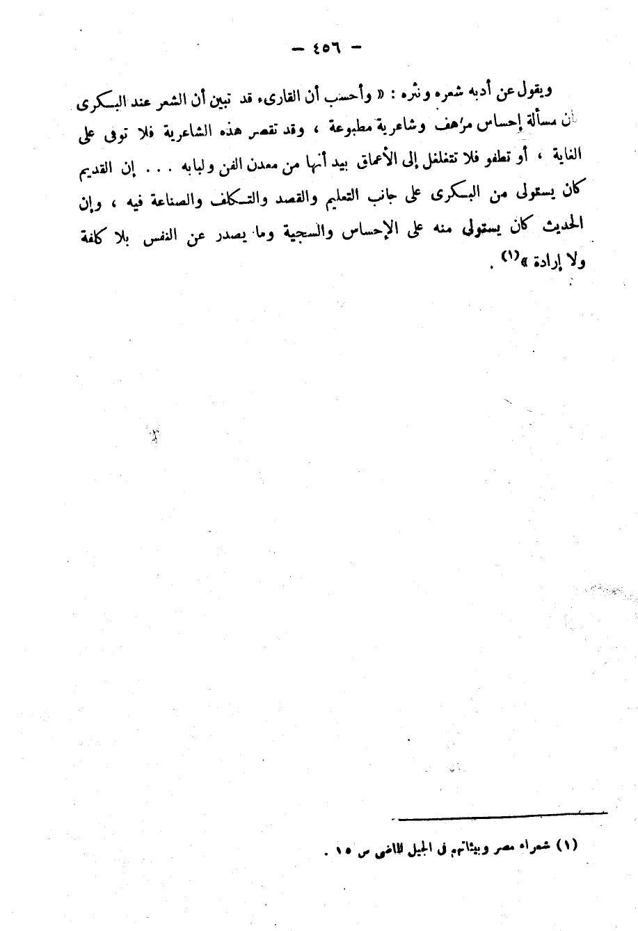 الشعر فيض الوجدان يظهر في صورة موسيقية جذابة، والوجدان ينفعل بمؤثرات عديدة فإذا كان الشاعر غير متزمت، أو متحرج مما يصدر عنه جاء شعره صادق العاطفة، معبرًا عن حقيقة نفسه، ولكنه إذا كان مثل البكري رجل دين، وسيدًا من الأشراف الذين يحتلون في المجتمع منزلة رفيعة كان من الطبيعي ألا يستجيب في شعره لكل ما ينفعل له وجدانه. ولهذا لا نرى للبكري غزلًا عاطفيًّا قويًّا وإنما هو نسيب يأتي به في أوائل القصائد محاكاة للأقدمين في طريقتهم وتشبيهاتهم، ووقوفهم على الأطلال من غير أن تكون ثمة أطلال، واستمع إليه يقول من قصيدته ذات القوافي: