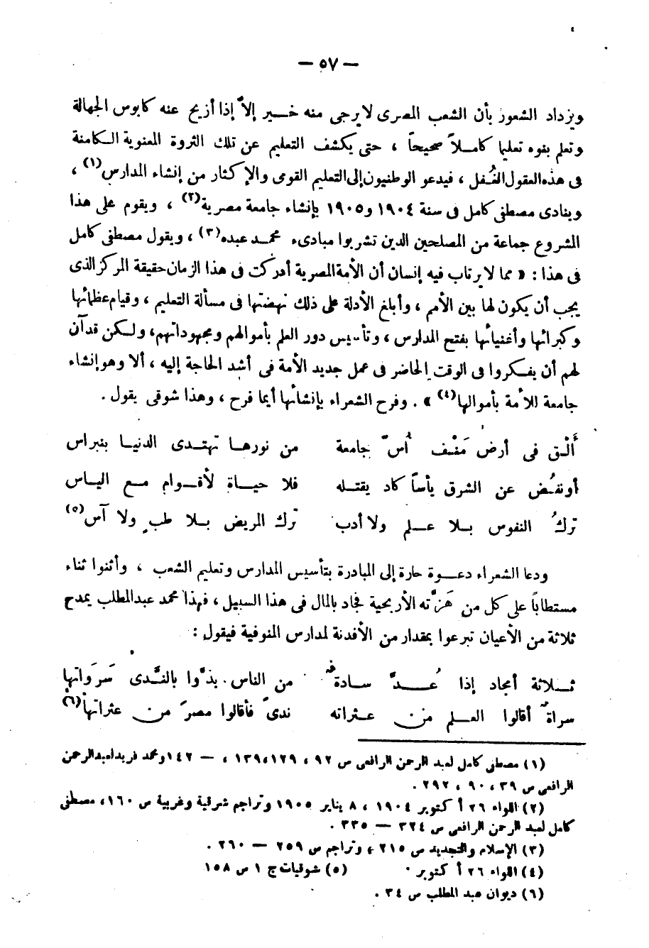 واستقرت عزائمهم لمناهضة الاحتلال نفسه، وهم الذين أثاروا مصر وقادوها في الجهاد، وكسبوا لها النظام: الديمقراطي، والحياة المستقلة"1 وهم الذين قادوا حرية الفكر بمصر، ووجهوا الأدب والدراسات الأدبية وجهة حديثة.