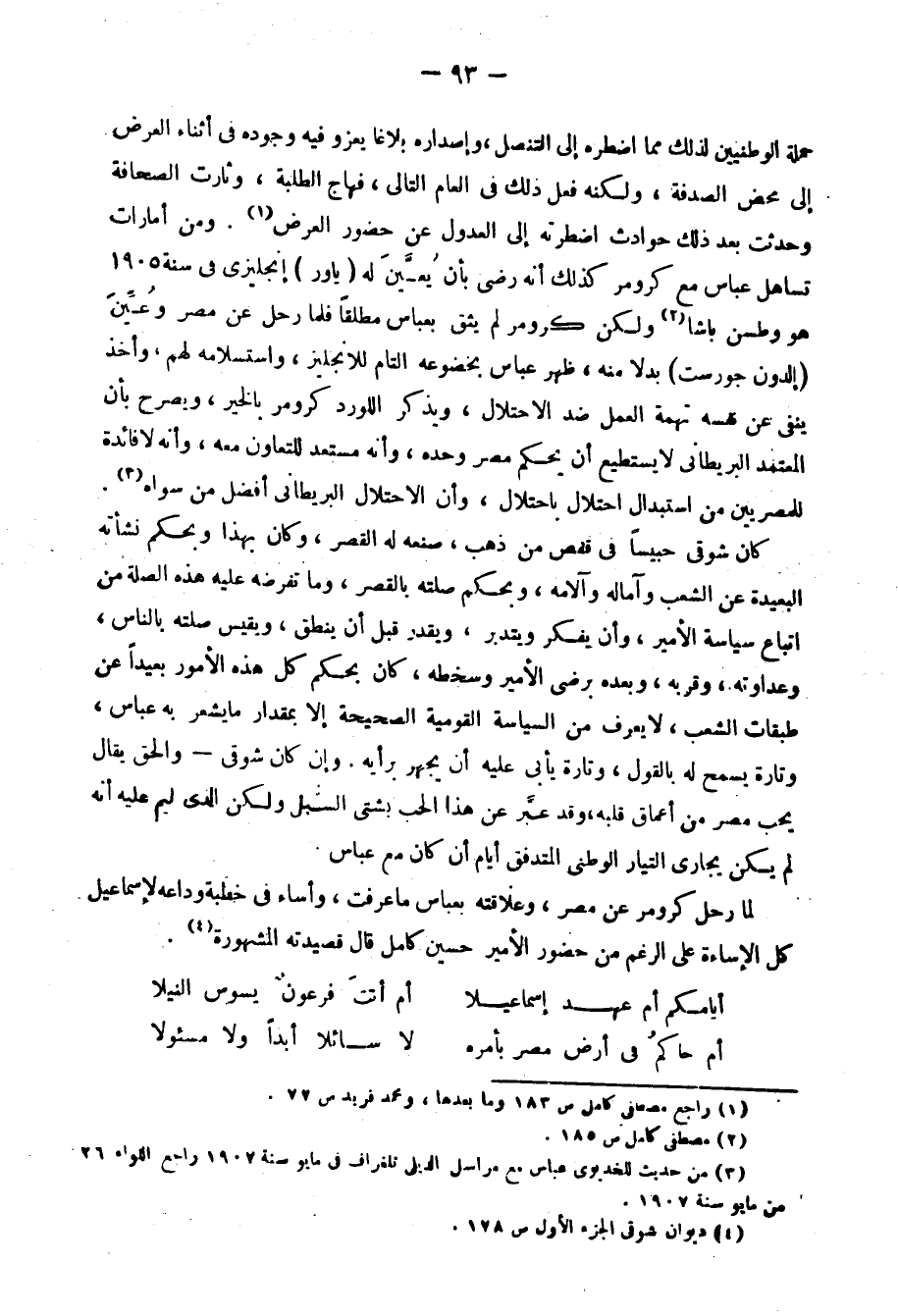 وقال في موضوع آخر: "ماذا يكون مصير البلاد المصرية لو تنازلت تركيا عن حقوقها لإنجلترا، أو تعاهدت معها على ذلك بمعاهدة شبيهة بالمعاهدة الفرنسية الإنجليزية "1904" ألا تصير ولاية إنجليزية؟ إذن فلماذا يدهش الكاتب من كوننا نجعل علائقنا مع تركيا حسنة، ونسعى لنيل الوسائل التي قد تفيدنا وتنفعنا؟ "3.