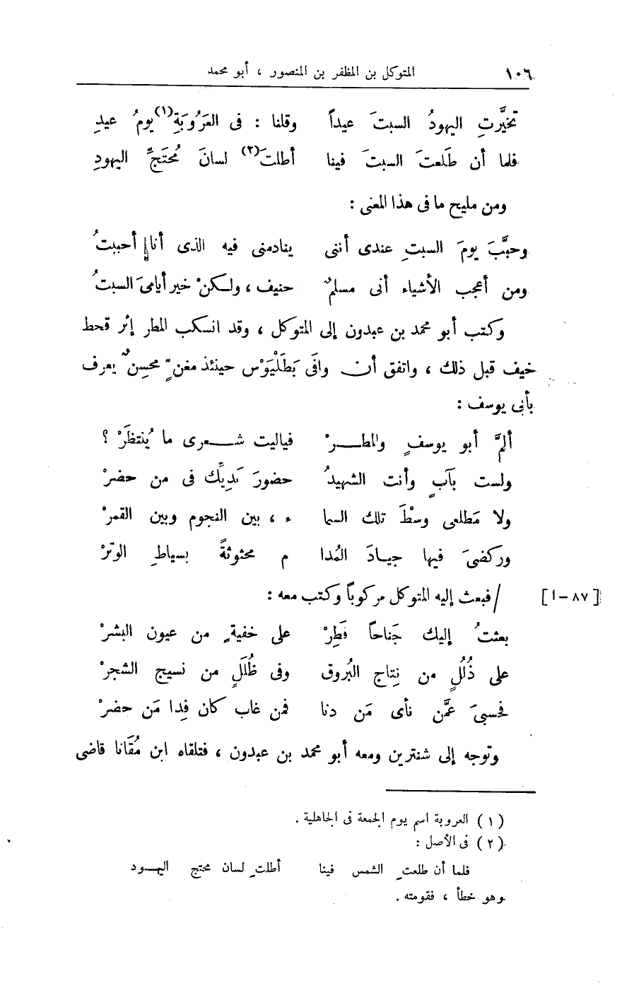 (تخيّرت الْيَهُود السبت عيداً ... وَقُلْنَا فِي الْعرُوبَة يَوْم عيد)