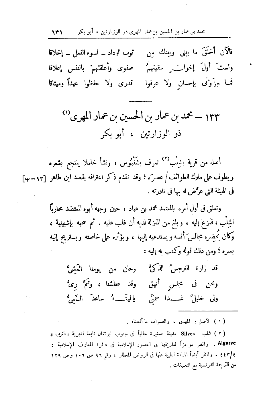 133 - مُحَمَّد بن عمار بن الْحُسَيْن بن عمار الْمهرِي ذُو الوزارتين أَبُو بكر