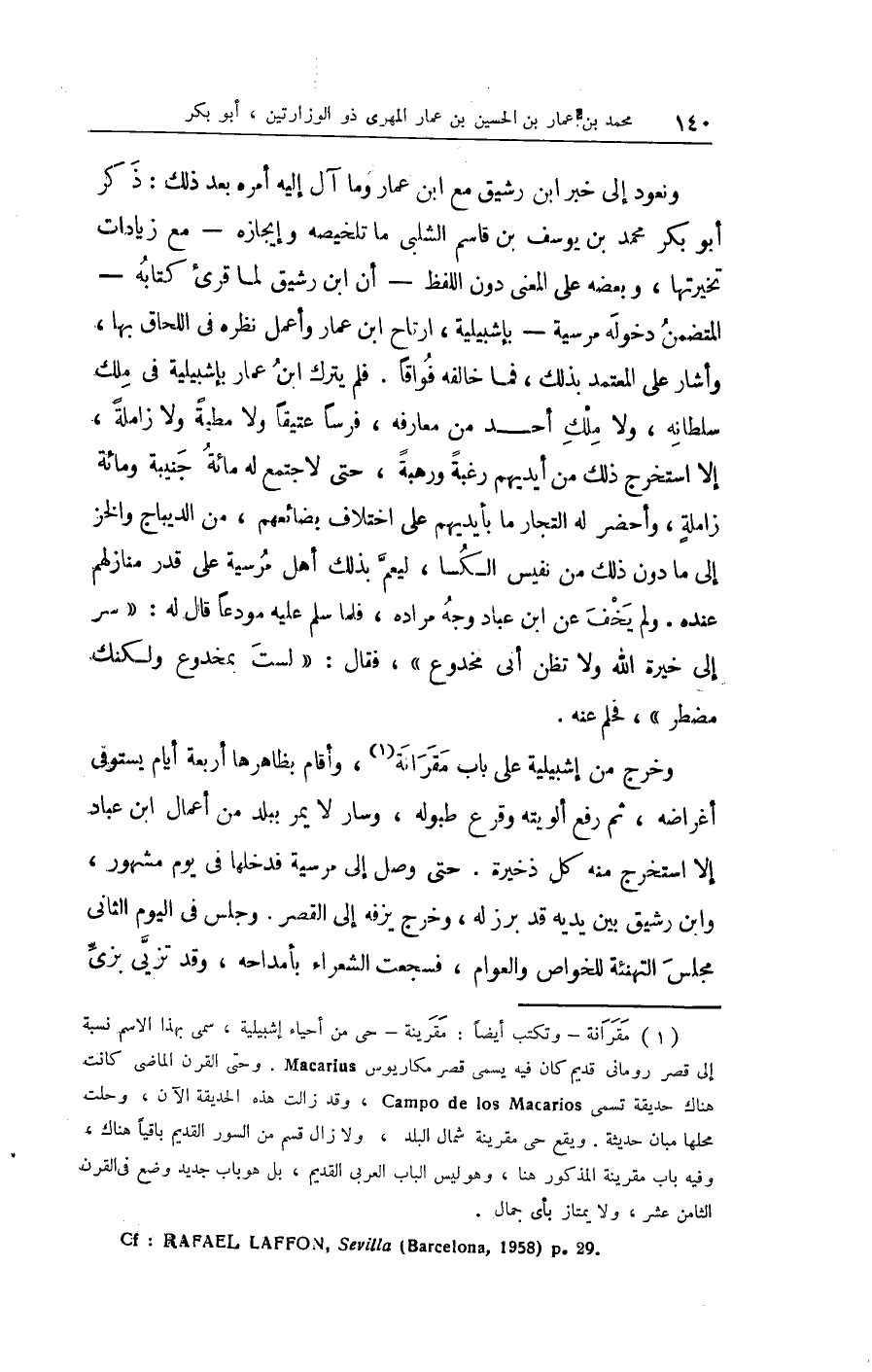 وَخرج من إشبيلية على بَاب مقرانة وَأقَام بظاهرها أَرْبَعَة أَيَّام يَسْتَوْفِي أغراضه ثمَّ رفع ألويته وقرع طبوله وَسَار لَا يمر بِبَلَد من أَعمال ابْن عباد إِلَّا استخرج مِنْهُ كل ذخيرة حَتَّى وصل إِلَى مرسية فَدَخلَهَا فِي يَوْم مَشْهُور وَابْن رَشِيق بَين يَدَيْهِ قد برز لَهُ وَخرج يزفه إِلَى الْقصر وَجلسَ فِي الْيَوْم الثَّانِي مجْلِس التهنئة للخواص والعوام فسجعت الشُّعَرَاء بأمداحه وَقد تزييّ بزيّ