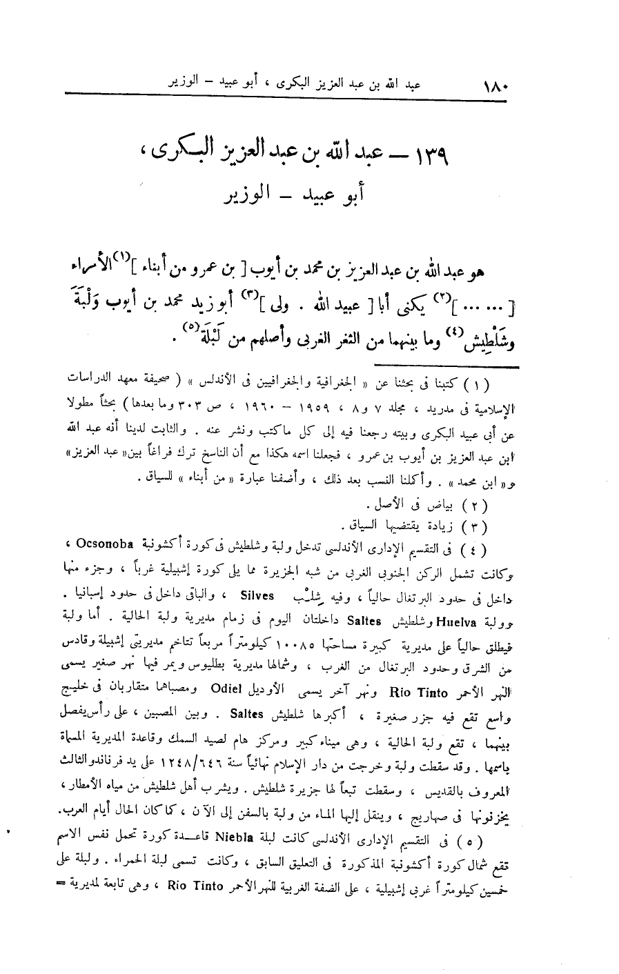 139 - عبد الله بن عبد الْعَزِيز الْبكْرِيّ أَبُو عبيد الْوَزير