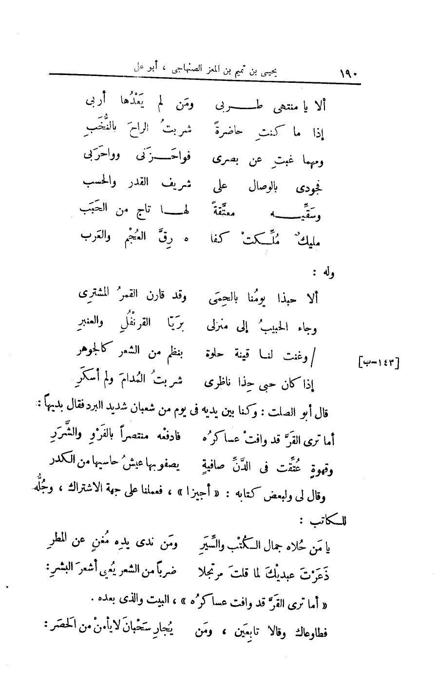 (أَلا حبذا يَوْمنَا بالحمى ... وَقد قَارن الْقَمَر المُشْتَرِي)