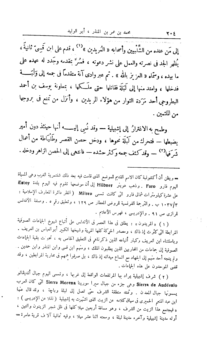 إِلَى من عِنْده من الشّلبيين وَأَصْحَابه المريدين قدم على ابْن قسيّ ثَانِيَة يظْهر الْجد فِي نصرته وَالْعَمَل على نشر دَعوته فسرّ بمقدمه وجدد لَهُ عَهده على مَا بِيَدِهِ وسّماه الْعَزِيز بِاللَّه ثمَّ عبر وَادي آنة مُتَقَدما فِي جمعه إِلَى ولبة فَدَخلَهَا وامتد مِنْهَا إِلَى لبلة فقاتلها حَتَّى ملكهَا بمعاونة يُوسُف بن أَحْمد البطروجي أحد مَرَدَة الثوار من هَؤُلَاءِ المريدين وَأنزل من تمنع فِي بروجها من الملثمين