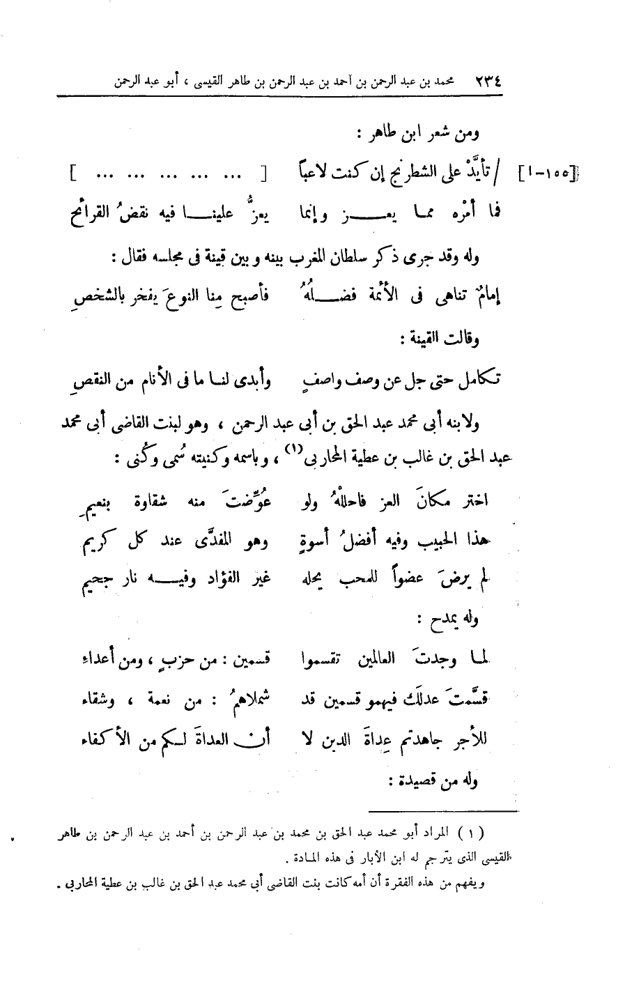 وَمن شعر ابْن طَاهِر