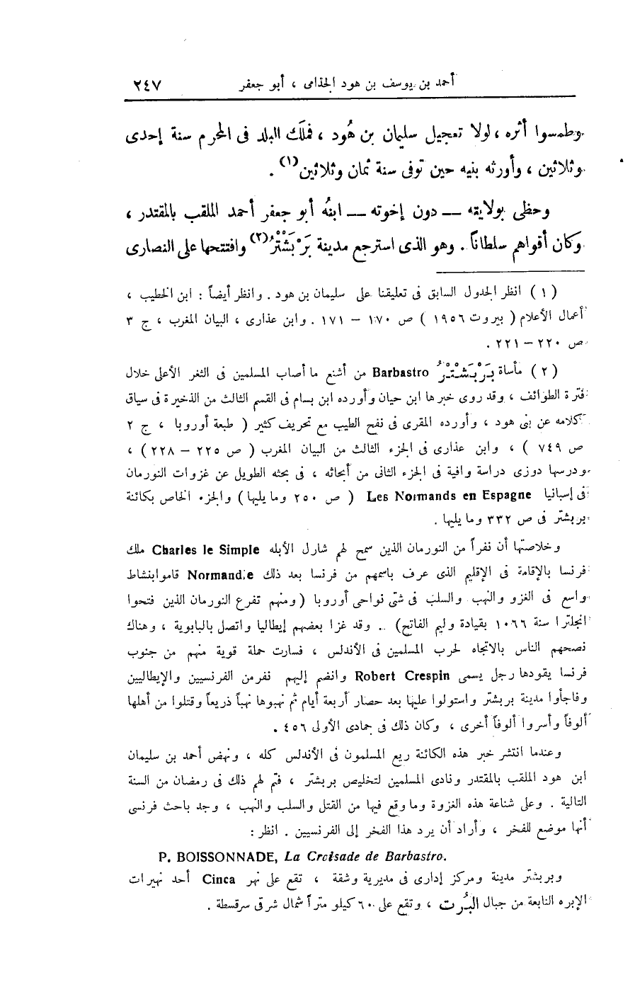وحظي بولايته دون إخْوَته ابْنه أَبُو جَعْفَر أَحْمد الملقب بالمقتدر وَكَانَ أقواهم سُلْطَانا وَهُوَ الَّذِي اسْترْجع مَدِينَة بربشتر وافتتحها على النَّصَارَى