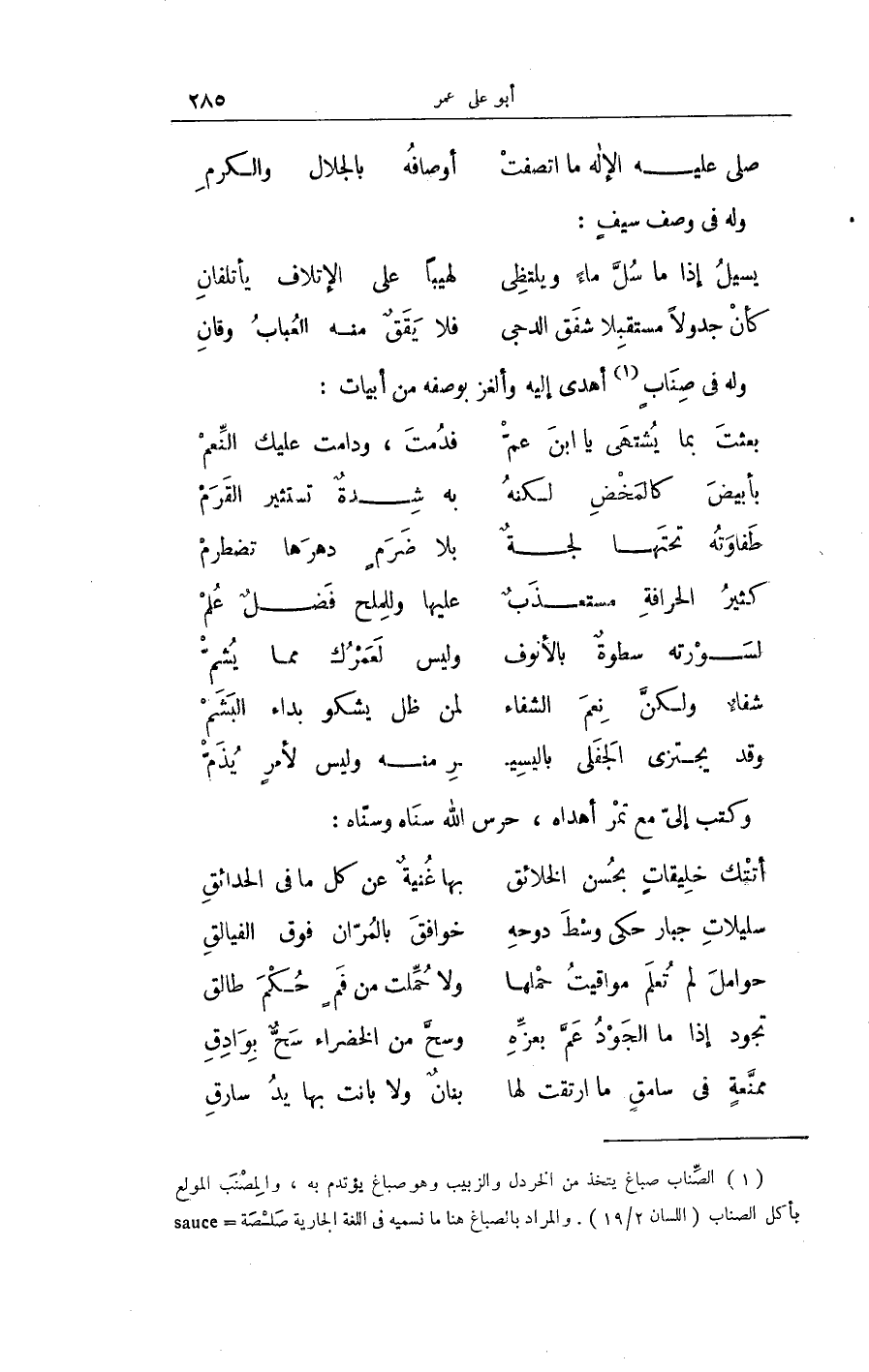 وَله فِي صناب أهْدى إِلَيْهِ وألغز بوصفه من أَبْيَات
