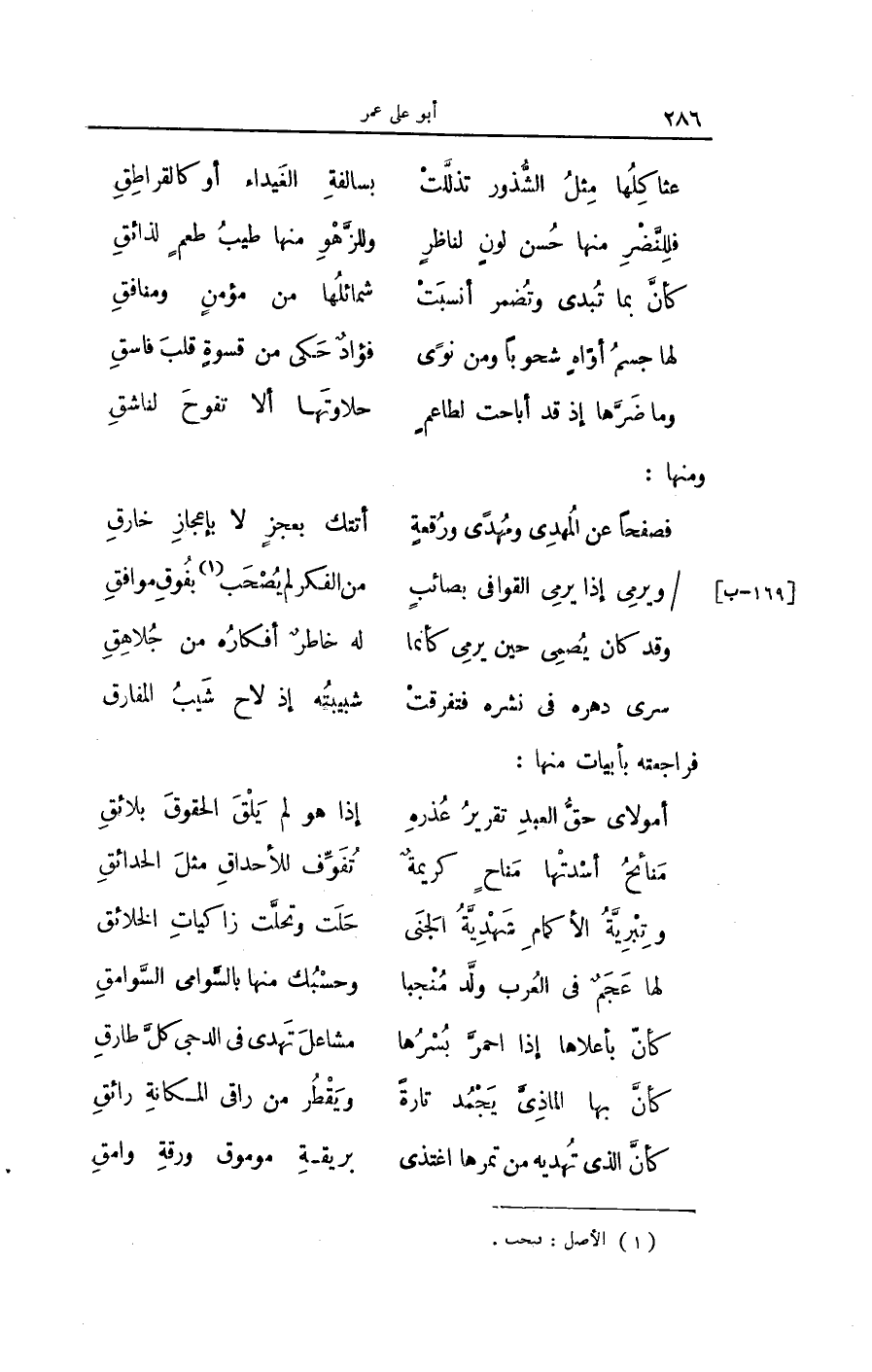 (فللنضر مِنْهَا حسن لون لناظر ... وللزّهو مِنْهَا طيب طعم لذائق)