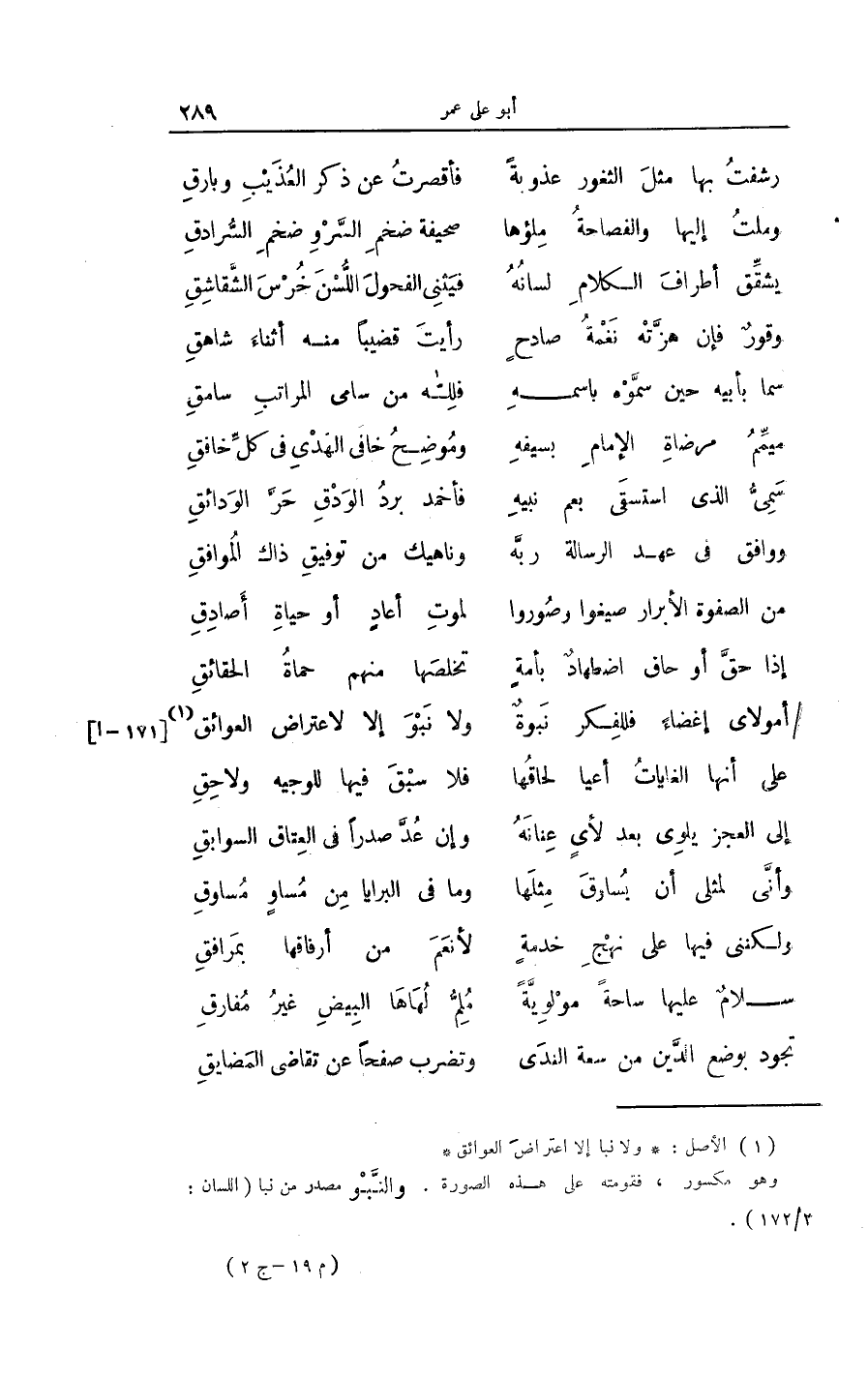 (أمولاي إغضاء فللفكر نبوة ... وَلَا نبو إِلَّا لاعتراض الْعَوَائِق)
