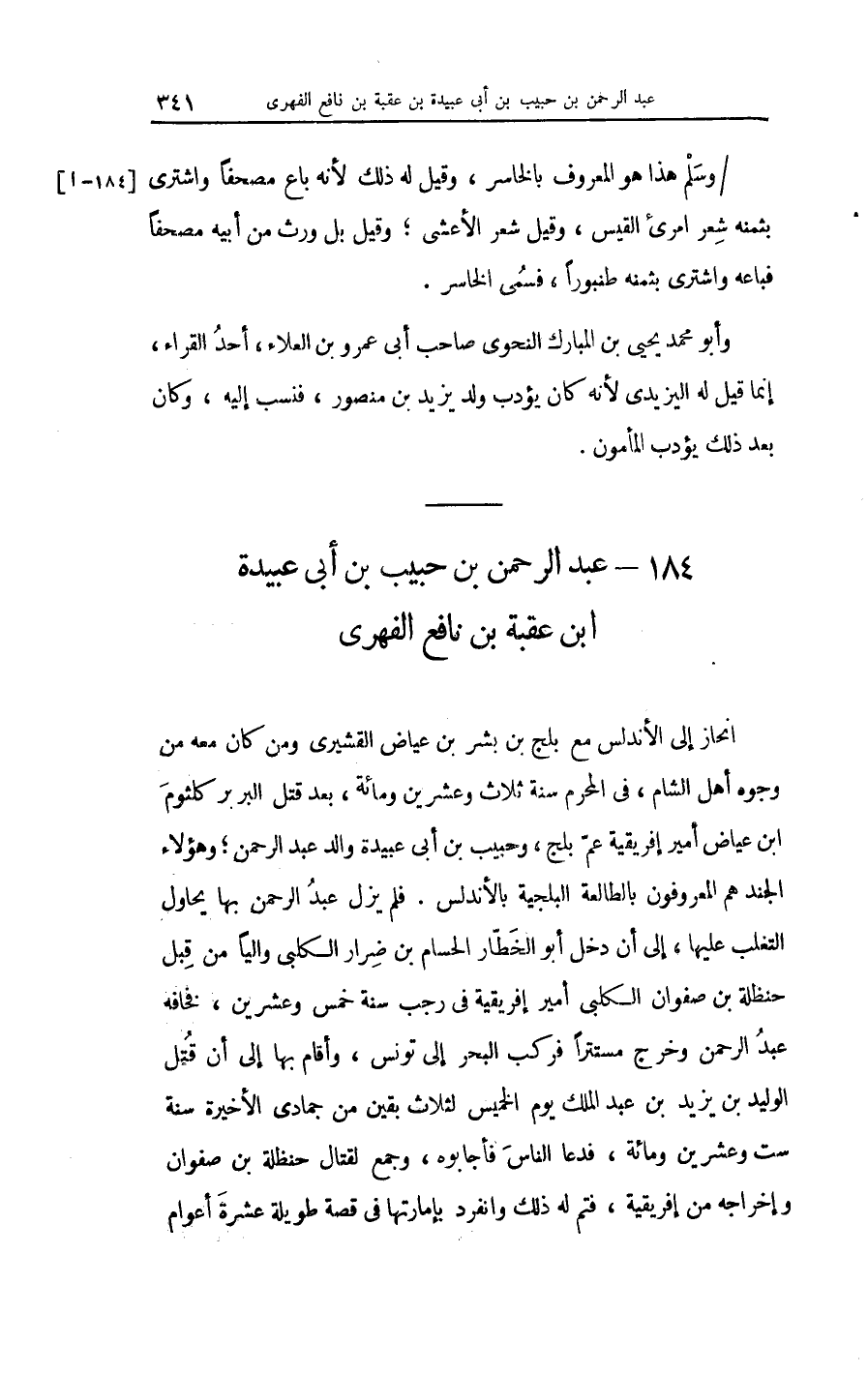 184 - عبد الرَّحْمَن بن حبيب بن أبي عُبَيْدَة ابْن عقبَة بن نَافِع الفِهري