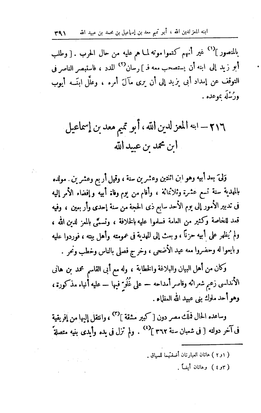 وَفِي كتاب أبي إِسْحَاق الرَّقِيق أَن خِلَافَته كَانَت أَرْبعا وَعشْرين سنة وَأَن عمره عِنْد وَفَاته بلغ ثَمَانِيَة وَأَرْبَعين سنة مولده سنة ثَمَان عشرَة وثلاثمائة