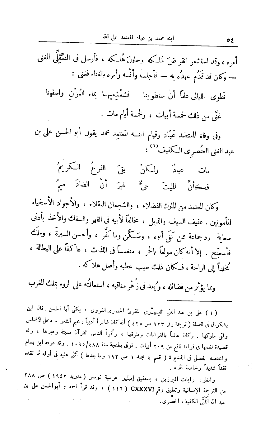 وَفِي وَفَاة المعتضد عبّاد وَقيام ابْنه الْمُعْتَمد مُحَمَّد يَقُول أَبُو الْحسن عَليّ بن عبد الْغَنِيّ الحصري الكفيف