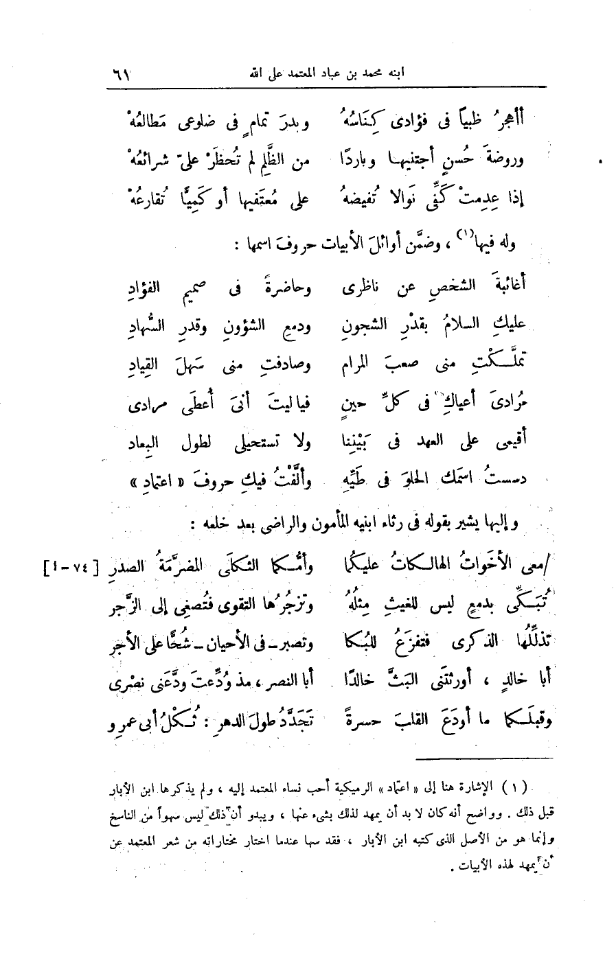 (دسست اسْمك الحلو فِي طيّه ... وألّفت فِيك حُرُوف اعْتِمَاد)