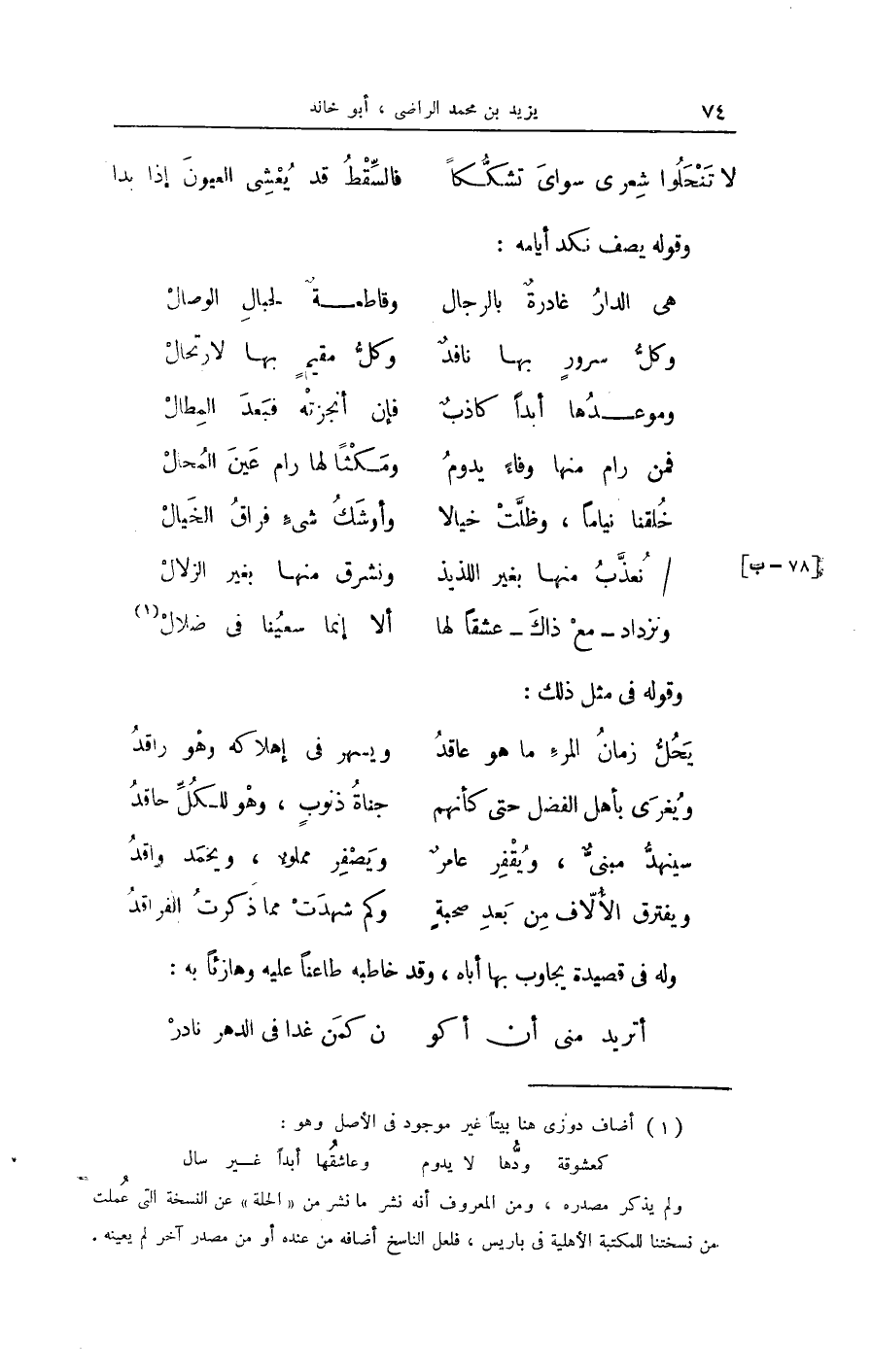 (ونزداد مَعَ ذَاك عشقا لَهَا ... أَلا إِنَّمَا سعينا فِي ضلال)