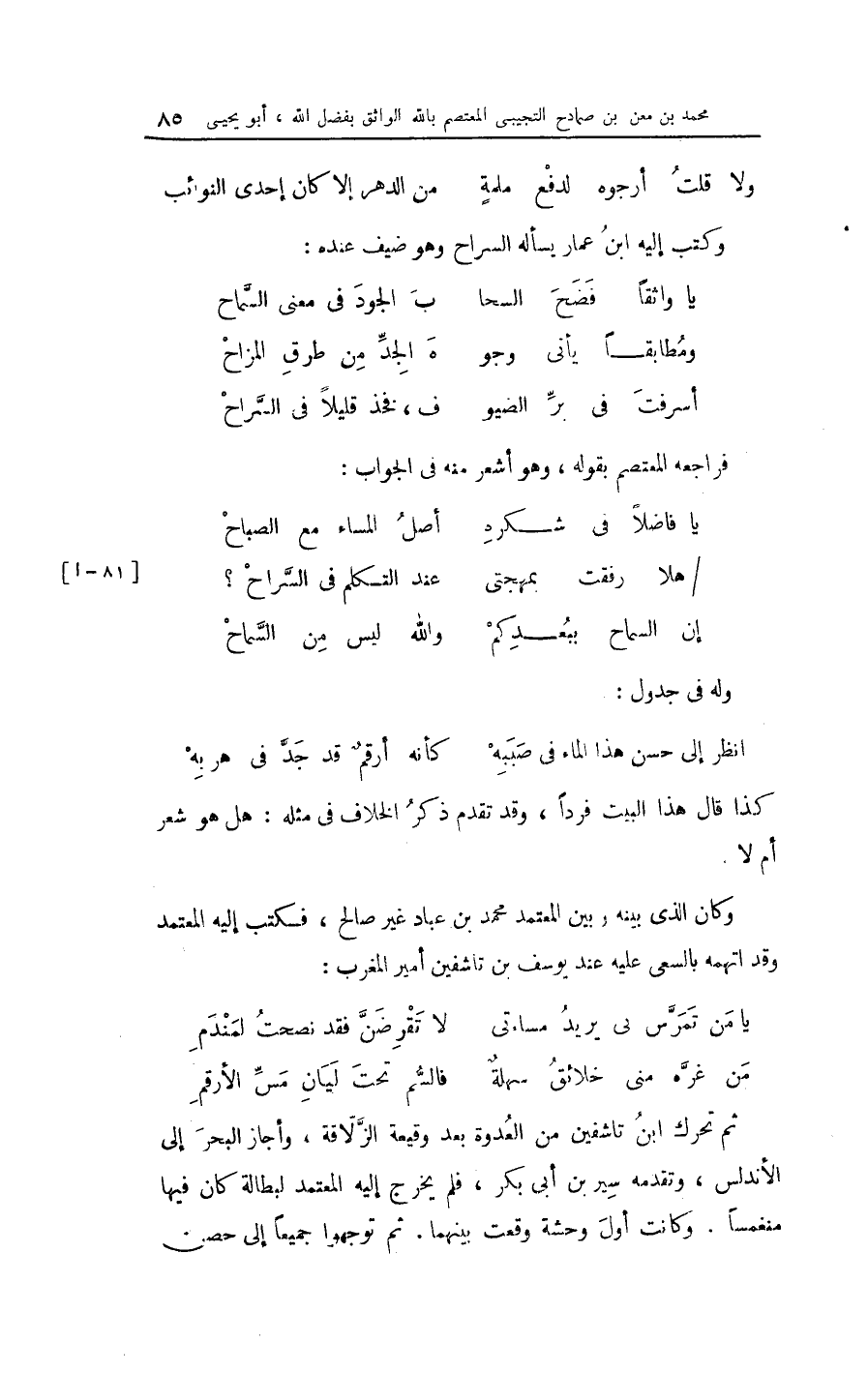 وَكتب إِلَيْهِ ابْن عمار يسْأَله السراح وَهُوَ ضيف عِنْده