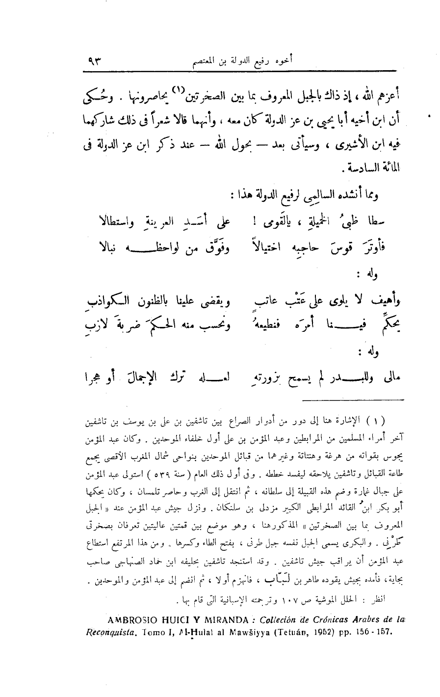 أعزهم الله إِذْ ذَاك بِالْجَبَلِ الْمَعْرُوف بِمَا بَين الصخرتين يحاصرونها وَحكى أَن ابْن أَخِيه أَبَا يحيى بن عز الدولة كَانَ مَعَه وأنهما قَالَا شعرًا فِي ذَلِك شاركهما فِيهِ ابْن الأشيري وَسَيَأْتِي بعد بحول الله عِنْد ذكر ابْن عز الدولة فِي الْمِائَة السَّادِسَة