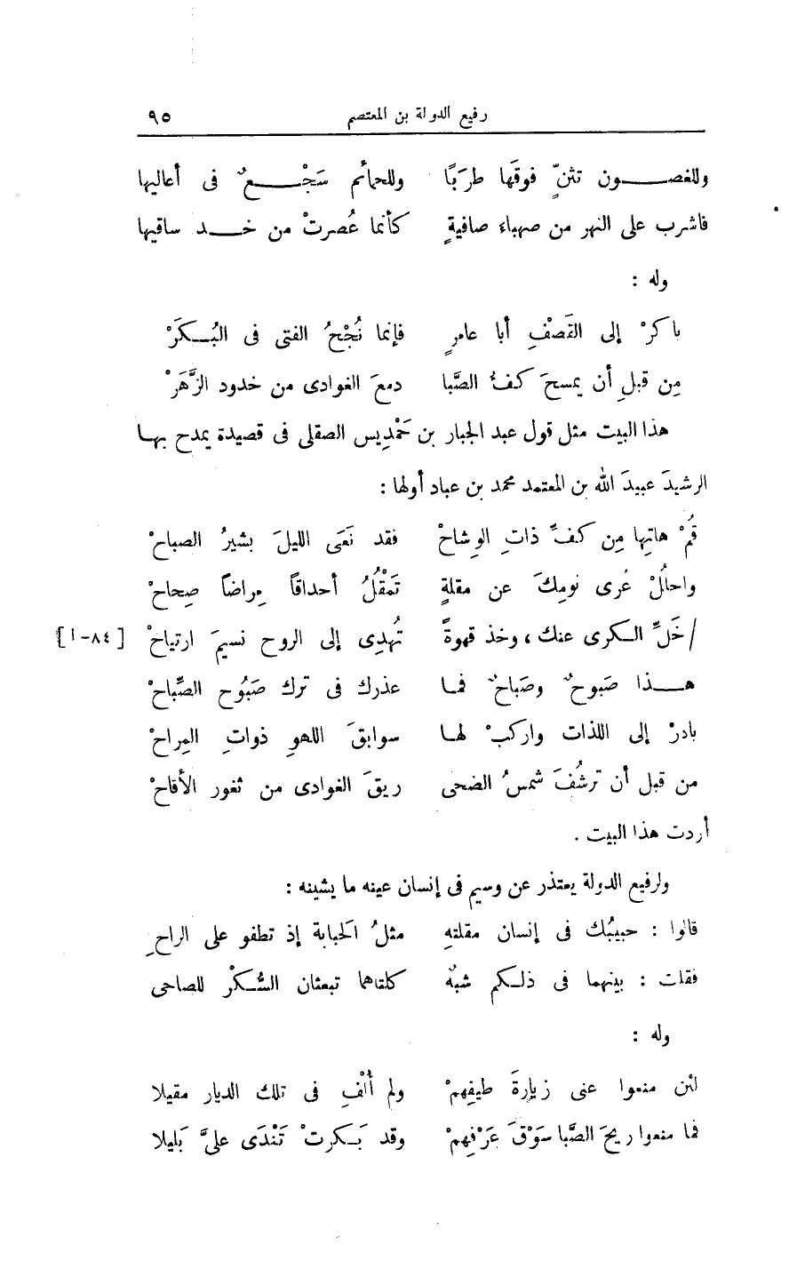 (قُم هَاتِهَا من كفّ ذَات الوشاح ... فقد نعى اللَّيْل بشير الصَّباح)