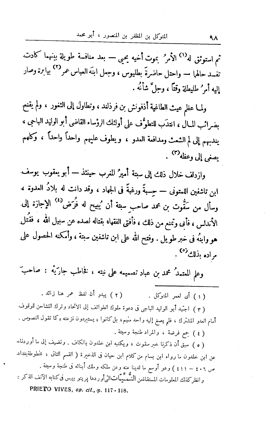 وَلما عظم عيث الطاغية أذفونش بن فرذلند وتطاول إِلَى الثغور وَلم يقنع بضرائب المَال انتدب للتطوّف على أُولَئِكَ الرؤساء القَاضِي أَبُو الْوَلِيد الْبَاجِيّ يندبهم إِلَى لم الشعث ومدافعة الْعَدو وَيَطوف عَلَيْهِم وَاحِدًا وَاحِدًا وَكلهمْ يصغي إِلَى وعظه