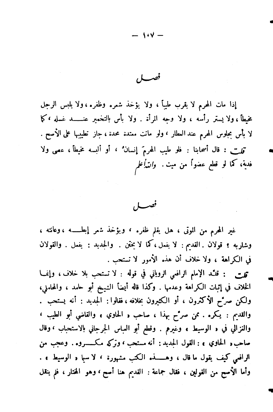 قُلْتُ: قَلَّدَ الْإِمَامُ الرَّافِعِيُّ الرُّويَانِيَّ فِي قَوْلِهِ: لَا تُسْتَحَبُّ بِلَا خِلَافٍ، وَإِنَّمَا الْخِلَافُ فِي إِثْبَاتِ الْكَرَاهَةِ وَعَدَمِهَا. وَكَذَا قَالَهُ أَيْضًا الشَّيْخُ أَبُو حَامِدٍ، وَالْمَحَامِلِيُّ، وَلَكِنْ صَرَّحَ الْأَكْثَرُونَ، أَوِ الْكَثِيرُونَ بِخِلَافِهِ، فَقَالُوا: الْجَدِيدُ: أَنَّهُ يُسْتَحَبُّ. وَالْقَدِيمُ: يُكْرَهُ. مِمَّنْ صَرَّحَ بِهَذَا، صَاحِبُ (الْحَاوِي) وَالْقَاضِي أَبُو الطَّيِّبِ، وَالْغَزَّالِيُّ فِي (الْوَسِيطِ) وَغَيْرُهُمْ. وَقَطَعَ أَبُو الْعَبَّاسِ الْجُرْجَانِيُّ بِالِاسْتِحْبَابِ، وَقَالَ صَاحِبُ (الْحَاوِي) : الْقَوْلُ الْجَدِيدُ: أَنَّهُ مُسْتَحَبٌّ، وَتَرْكُهُ مَكْرُوهٌ. وَعَجَبٌ عَنِ الرَّافِعِيِّ كَيْفَ يَقُولُ مَا قَالَ، وَهَذِهِ الْكُتُبُ مَشْهُورَةٌ، لَا سِيَّمَا (الْوَسِيطُ) . وَأَمَّا الْأَصَحُّ مِنَ الْقَوْلَيْنِ، فَقَالَ جَمَاعَةٌ: الْقَدِيمُ هُنَا أَصَحُّ، وَهُوَ الْمُخْتَارُ، فَلَمْ يُنْقَلْ