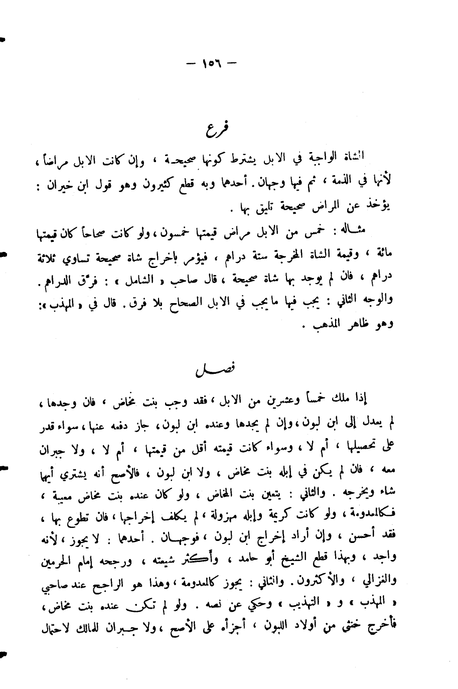 الشَّاةُ الْوَاجِبَةُ فِي الْإِبِلِ يُشْتَرَطُ كَوْنُهَا صَحِيحَةً وَإِنْ كَانَتِ الْإِبِلُ مِرَاضًا؛ لِأَنَّهَا فِي الذِّمَّةِ، ثُمَّ فِيهَا وَجْهَانِ، أَحَدُهُمَا وَبِهِ قَطَعُ كَثِيرُونَ وَهُوَ قَوْلُ ابْنِ خَيْرَانَ: يُؤْخَذُ عَنِ الْمِرَاضِ صَحِيحَةٌ تَلِيقُ بِهَا.