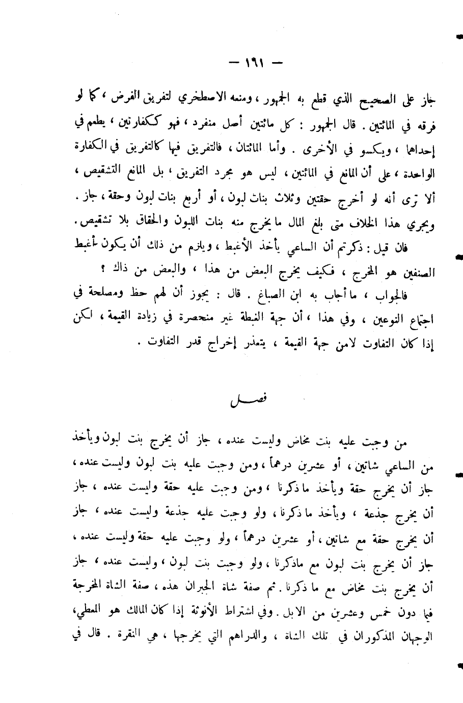 جَازَ عَلَى الصَّحِيحِ الَّذِي قَطَعَ بِهِ الْجُمْهُورُ، وَمَنَعَهُ الْإِصْطَخْرِيُّ لِتَفْرِيقِ الْفَرْضِ، كَمَا لَوْ فَرَّقَهُ فِي الْمِائَتَيْنِ. قَالَ الْجُمْهُورُ: كُلُّ مِائَتَيْنِ أَصْلٌ مُنْفَرِدٌ، فَهُوَ كَكَفَّارَتَيْنِ، يُطْعِمُ فِي إِحْدَاهِمَا، وَيَكْسُو فِي الْأُخْرَى. وَأَمَّا الْمِائَتَانِ، فَالتَّفْرِيقُ فِيهِمَا كَالتَّفْرِيقِ فِي الْكَفَّارَةِ الْوَاحِدَةِ، عَلَى أَنَّ الْمَانِعَ فِي الْمِائَتَيْنِ لَيْسَ هُوَ مُجَرَّدُ التَّفْرِيقِ، بَلِ الْمَانِعُ التَّشْقِيصُ، أَلَا تَرَى أَنَّهُ لَوْ أَخْرَجَ حِقَّتَيْنِ وَثَلَاثَ بَنَاتِ لَبُونٍ أَوْ أَرْبَعَ بَنَاتِ لَبُونٍ وَحِقَّةً، جَازَ. وَيَجْرِي هَذَا الْخِلَافُ مَتَى بَلَغَ الْمَالُ مَا يُخْرَجُ مِنْهُ بَنَاتُ اللَّبُونِ وَالْحِقَاقُ بِلَا تَشْقِيصٍ.